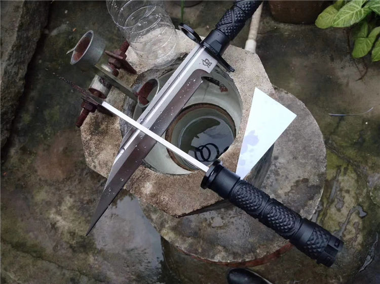 全开锋、特别锋利,削纸,过水瓶随便弄,户外探险者的最爱,车载。附带pu皮叨套