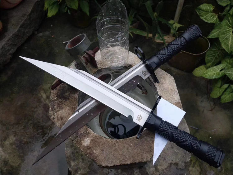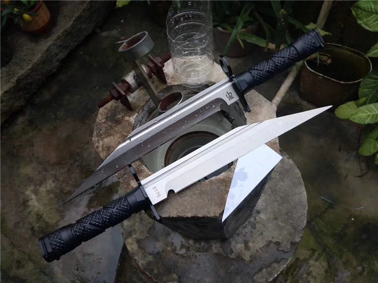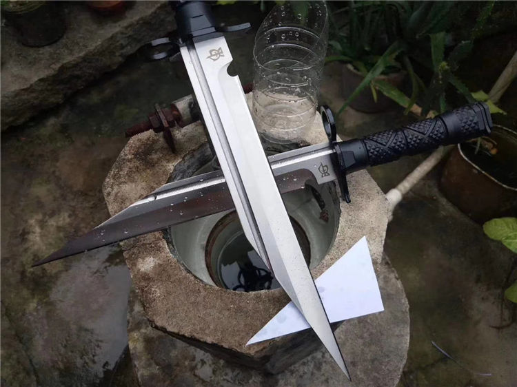 狼途特兰直刀 全长:40cm 刃长:28cm 硬度:58HRC 材质:8CR13mov 全开锋、特别锋利,削纸,过水瓶随便弄,户外探险者的最爱,车载。附带pu皮叨套