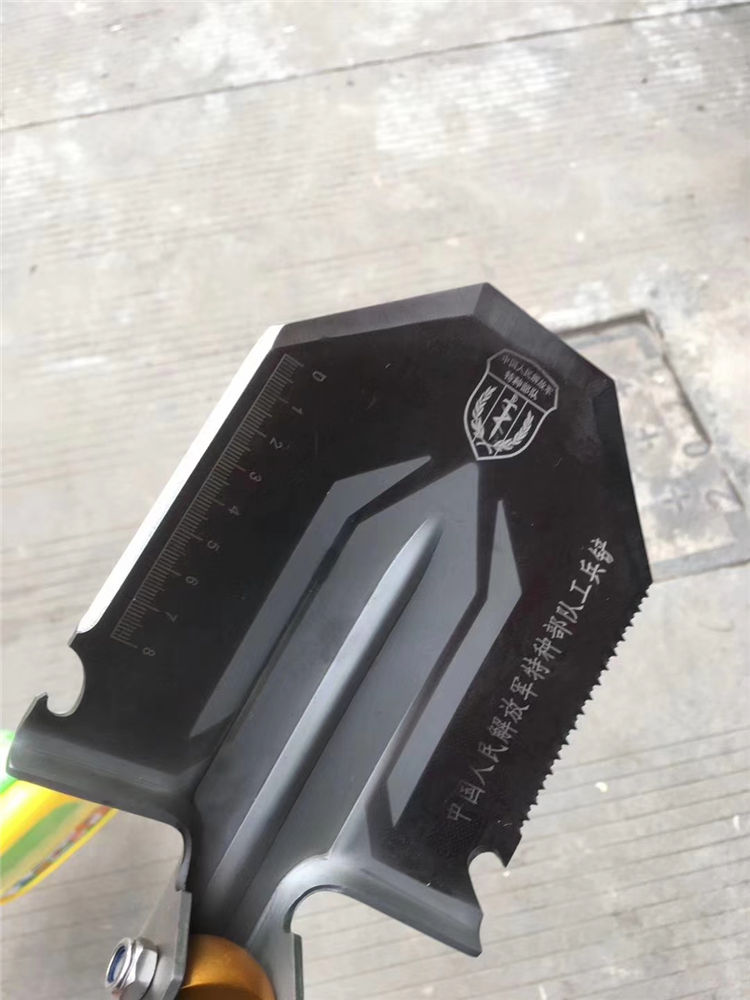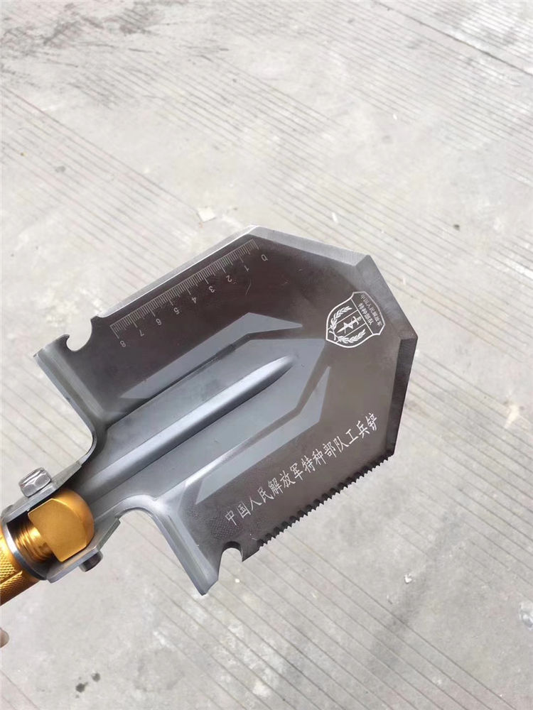 二代特种作战大队兵工铲 二代特种作战大队侦察营特务连战时军用撬,铲柄超长超厚全长将近90cm、锋利度达到6.2RC,附带军用求生哨和破窗逃生的尖锤以及野外生火用的打火棒和螺丝刀、切割刀具开瓶器、去鳞齿)与钢铲(锄头、倒钩、锯齿、割绳钩、菜刀)等多功能装备
