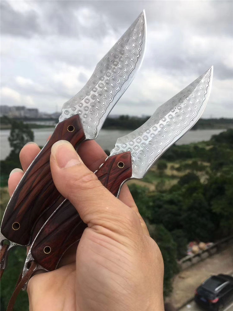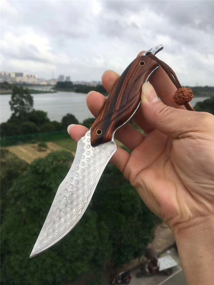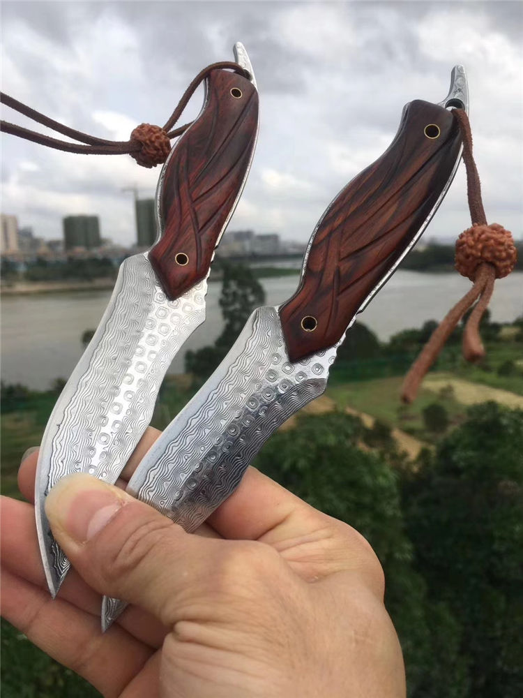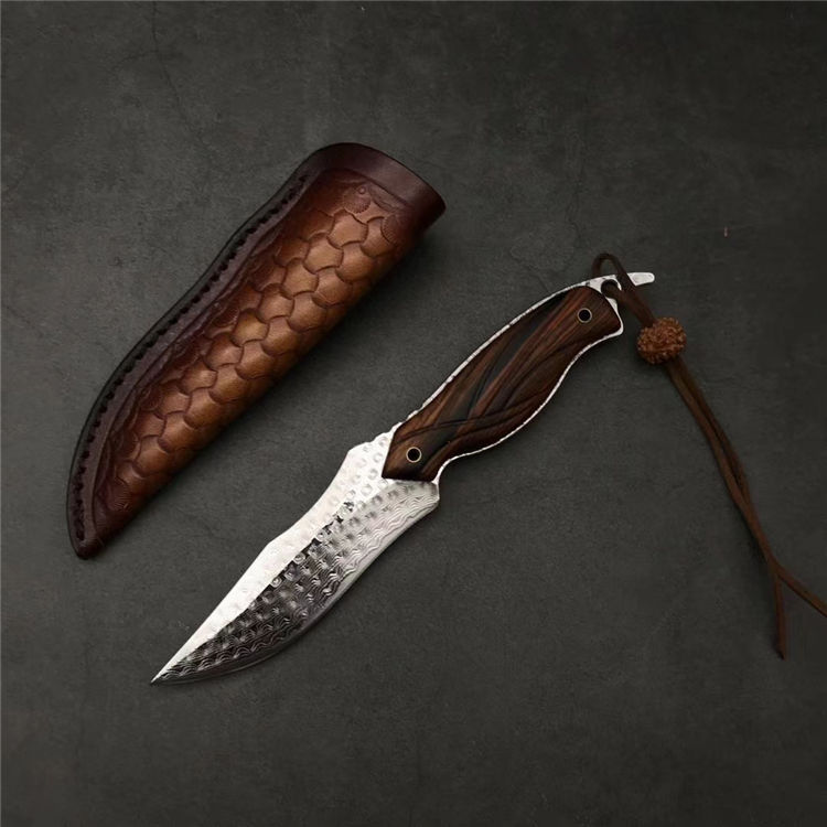 其他: 刃口锋利,手工皮套,大马士革钢花纹颜色各异,以实物为准
