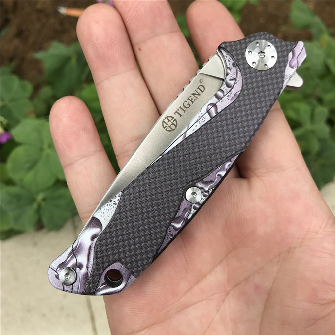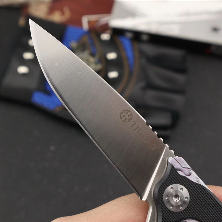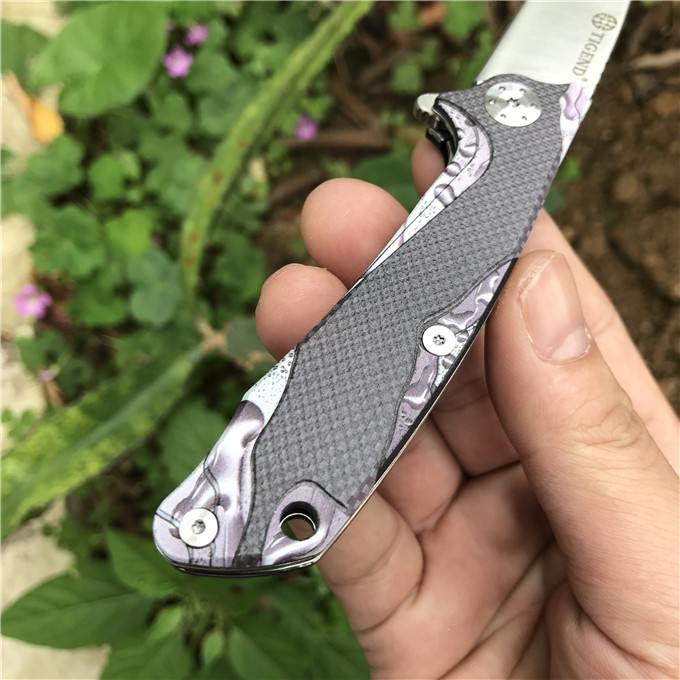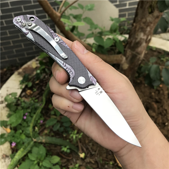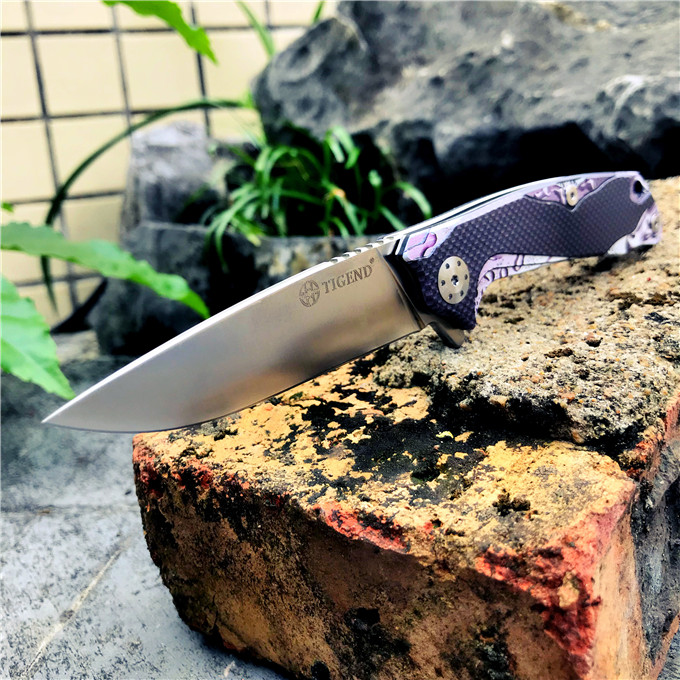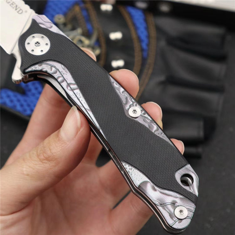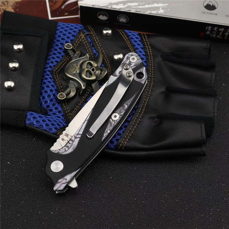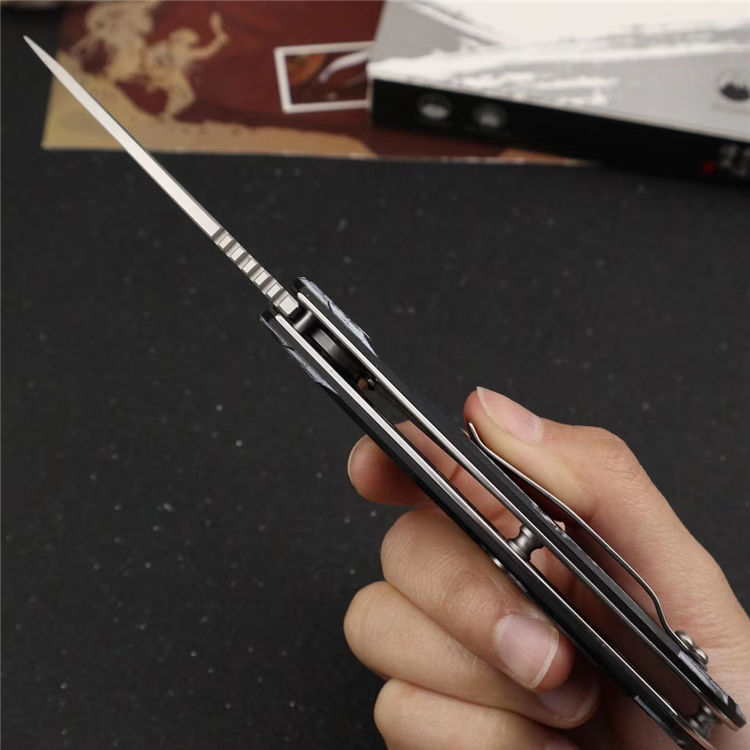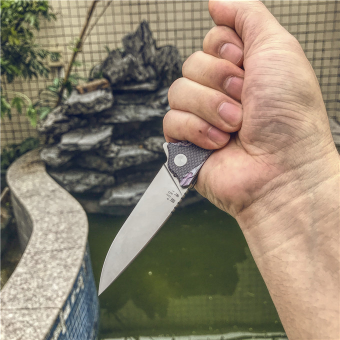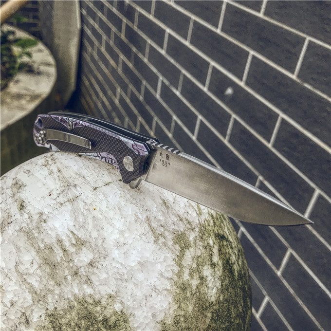长风眼镜蛇D2折刀 刀刃:D2 硬度:60o±1o 刃厚:3.0mm 表面:砂光 手柄内衬:2.0mm不锈钢减重内片 手柄:黑色G10+3d打印工艺 刃长:70mm 总长:180mm 重量:82g