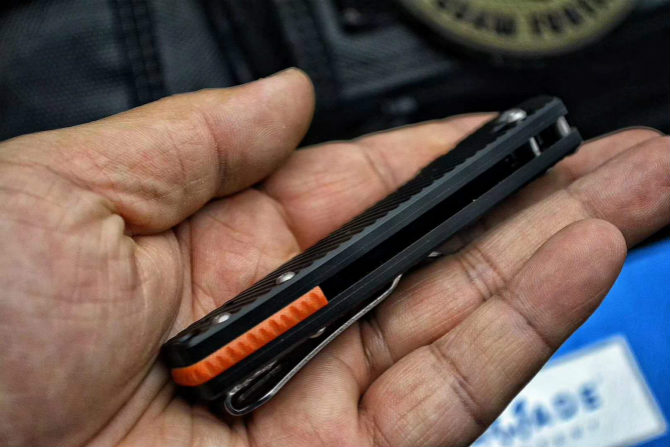 新版巨力蝴蝶485折刀 全长:17厘米 叶片长度:7.5厘米 叶片厚度:0.25cm 叶片材料:真实的D2硬度60标记M390 表面处理:黑色镀钛 手柄长度:9.5cm 手柄材料:TC4钛柄钢衬板 重量:85克 系统:AXIS 其他:原包装