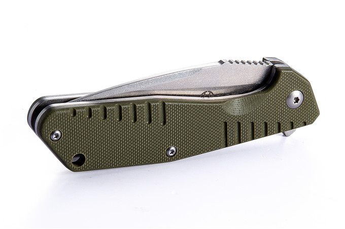 长风CF1815轴承快开折刀 型号:CF1815 类型:轴承快开折刀 刃长:79mm 总长:182mm 刀刃:8Cr14MoV HRC:59o±1o\60o±1o 刃厚:3.0mm 表面:石洗 手柄内衬:2.0mm不锈钢减重内片 手柄:黑色G10\绿色G10\棕色G10 重量:95g"