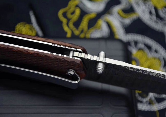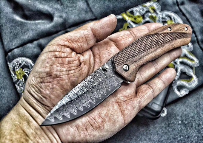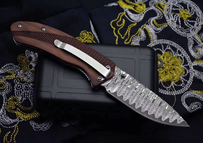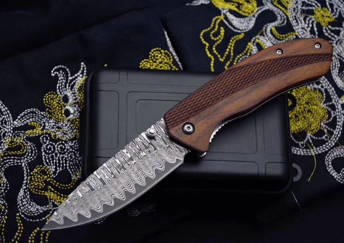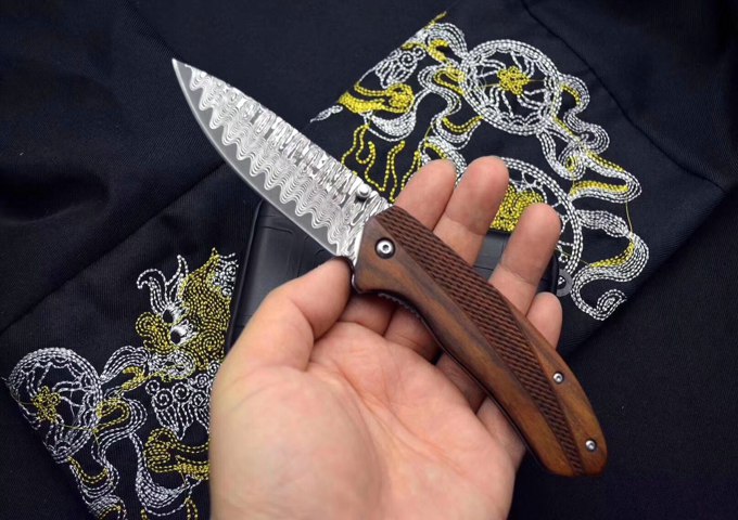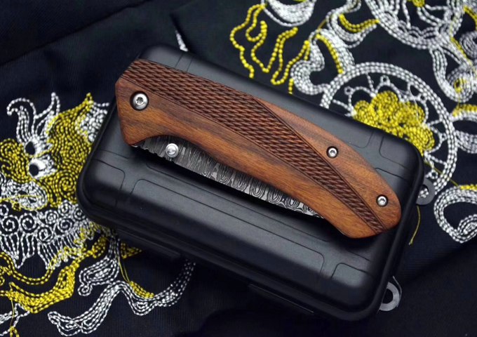 史密斯酸洗花纹折刀 总长:20cm 刃长:8.7cm 刃厚:2.5MM 刃宽:2.7cm 钢材:5Cr 硬度:56-57HRC 柄材:优质酸枝木,精美雕花 韧性好保持性与防锈性好,是广泛国外用刀钢材,