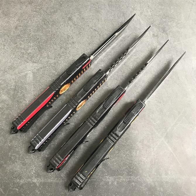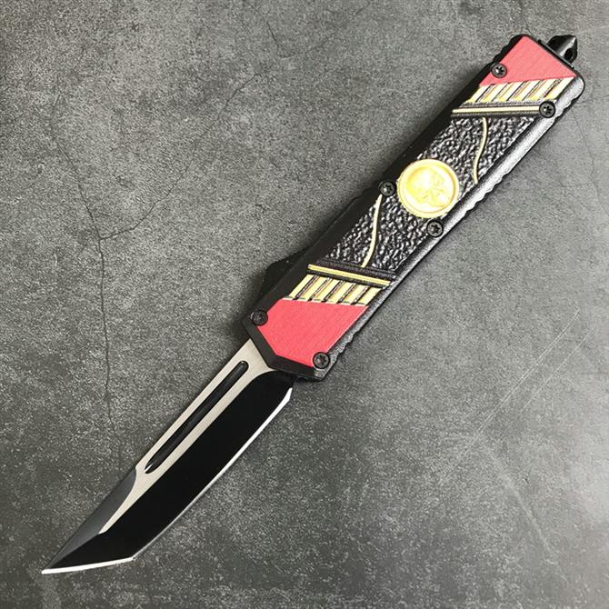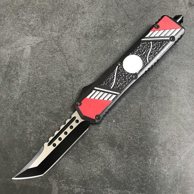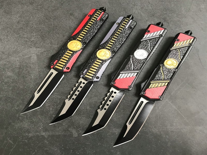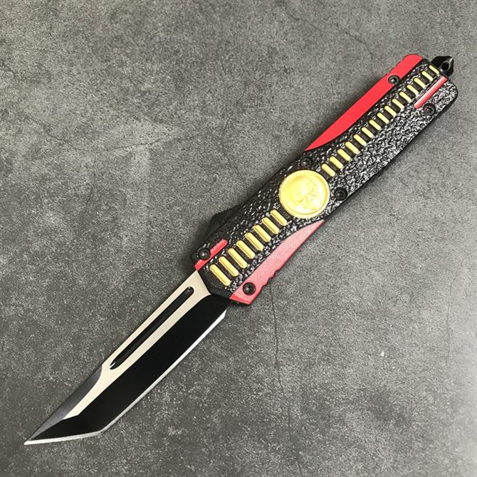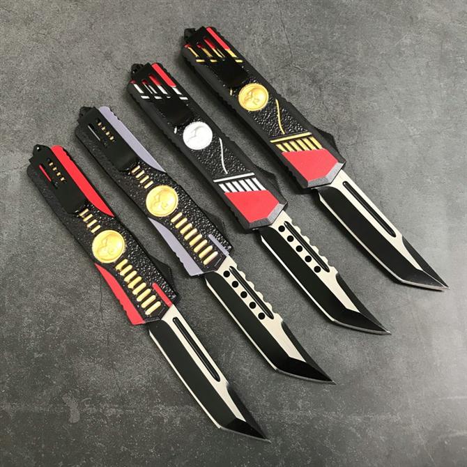 MICROTECH微技术825-826直出跳刀 类型:直出弹簧刀 品牌:MICROTECH微技术 开启长度:22.8CM 合起长度:14CM 刃长:9cm 刃厚:2.9CM 硬度:57HRC 刃材:440 表面:刀刃发黑伴拉丝 把手:锌铝合金 净重:300克(整刀) 毛重:450克(含包装物) 开合:双动作,直推开关,自动弹出和收回 包装:耐磨专用战术尼龙套 口袋刀夹:弹簧刀夹