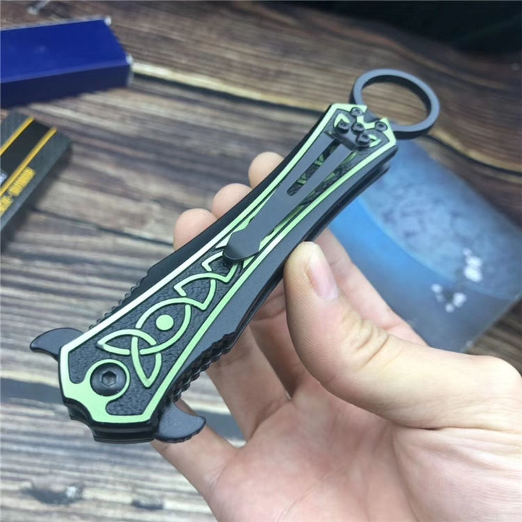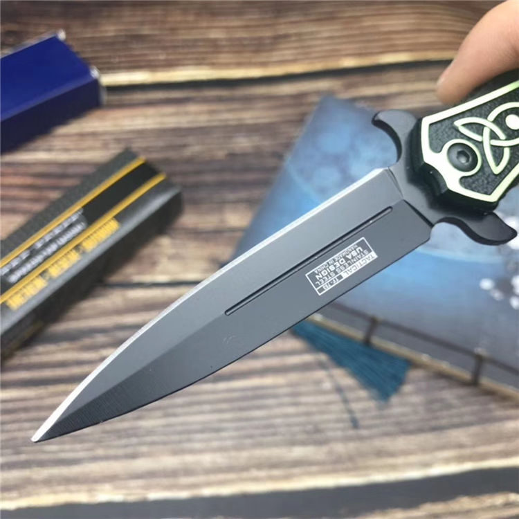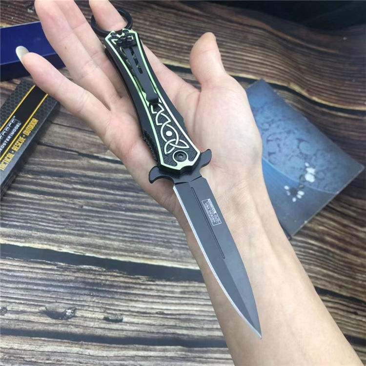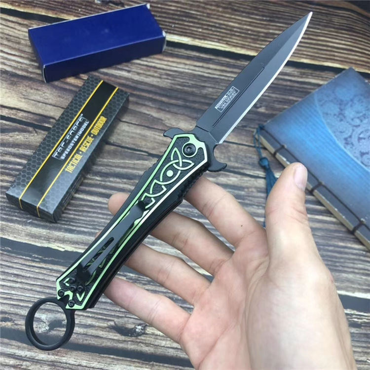 TAC剑鱼折刀 全长:230mm 刃长:90mm 柄长:140mm 刃宽:15mm 刃厚:2.8 mm 材质:7cr13 重量:93g(含包装) 硬度:55 HRC 表面:黑色 手柄材质:铝合金