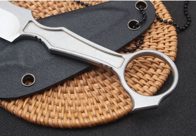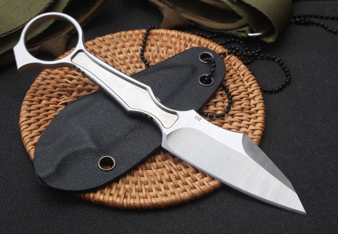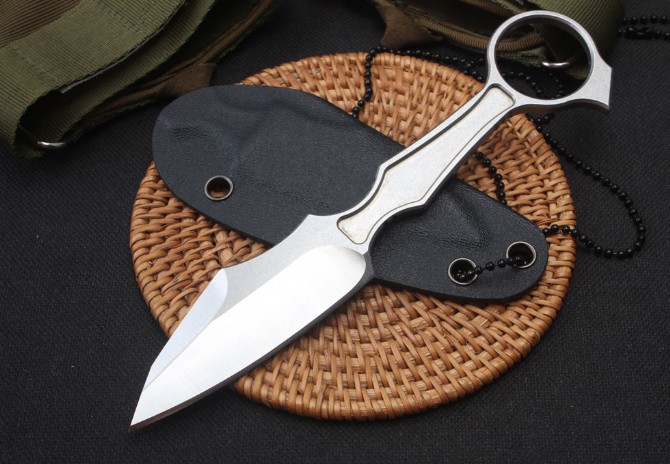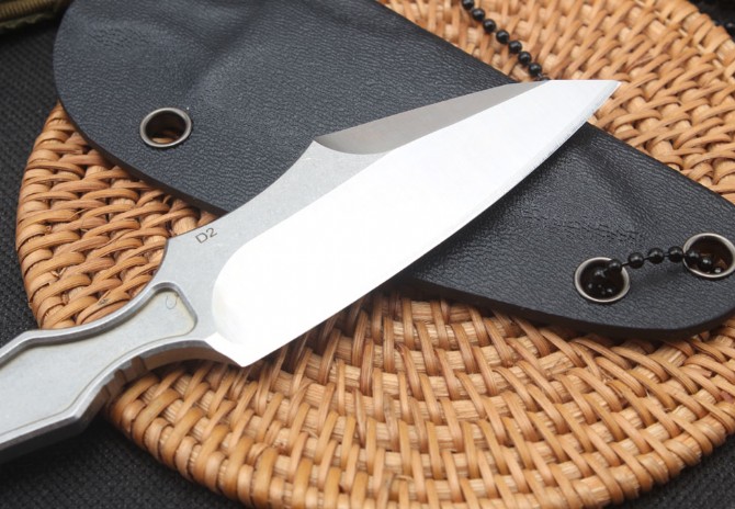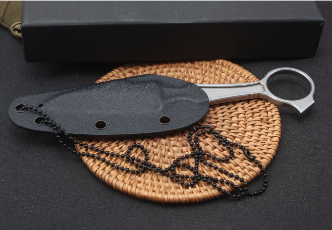 博克项链小直刀 总长:175mm 刀片长度:74mm 刀片厚度:5mm 刀片材料:D2 硬度:58-59HRC 刀刃:缎面 手柄材质:钢石洗 重量:刀-70g,Kydex-24g 护套:KYDEX