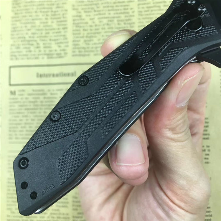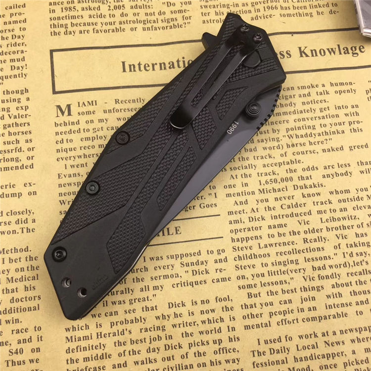 卡秀1990折刀 材质:8Cr13MoV,黑色 柄材:玻璃填充尼龙 刃长:8.3厘米 闭合长度:14.3厘米 总长度:18.7厘米 重量:110.6克