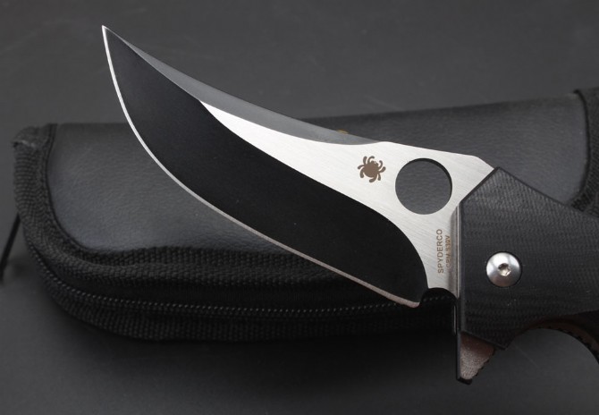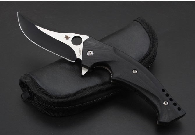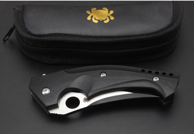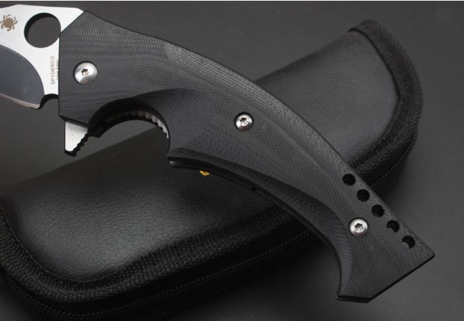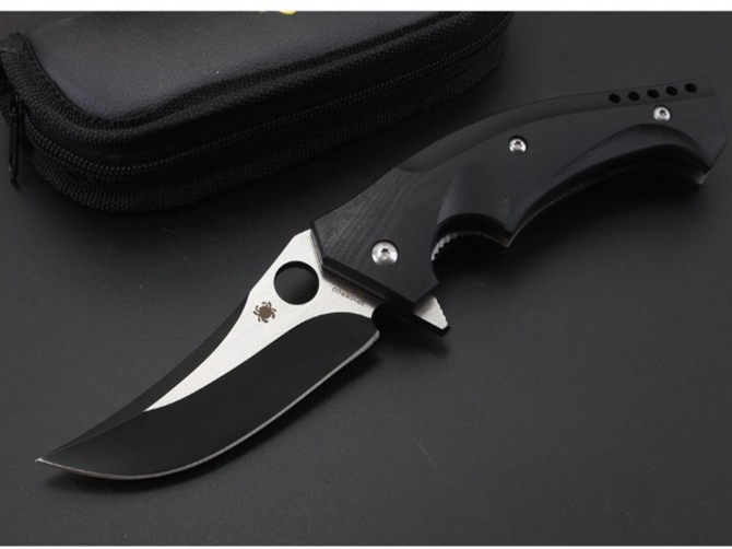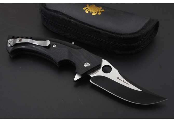 蜘蛛C196轴承快开折刀 总长:23cm 刃长:9.5cm 刃厚:4mm 刃材:CPMS30V 刃面处理:镀钛 手柄材质:G10 系统:滚珠轴承系统 硬度:58HRC 重量:260克