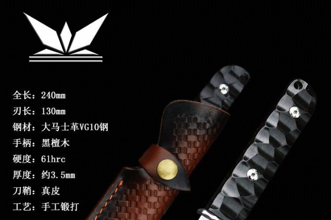 其他:刃口锋利,真头层手工刻花牛皮套,纸盒