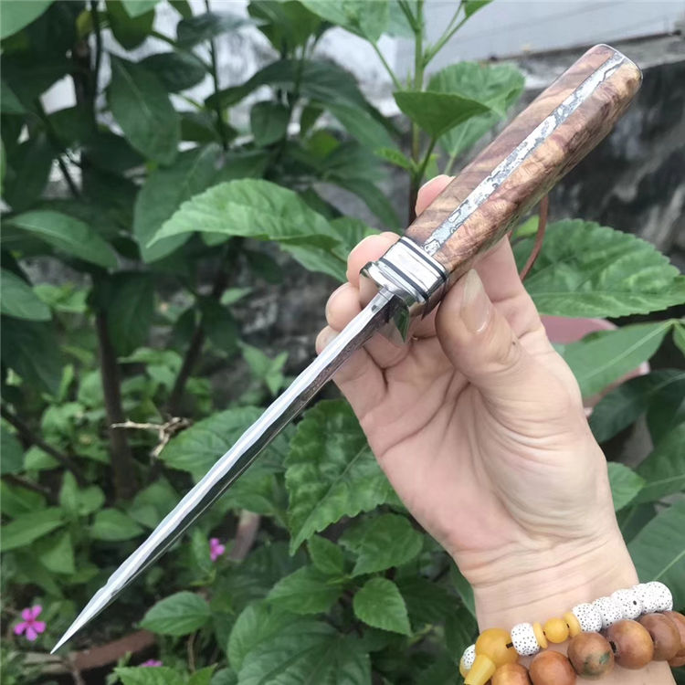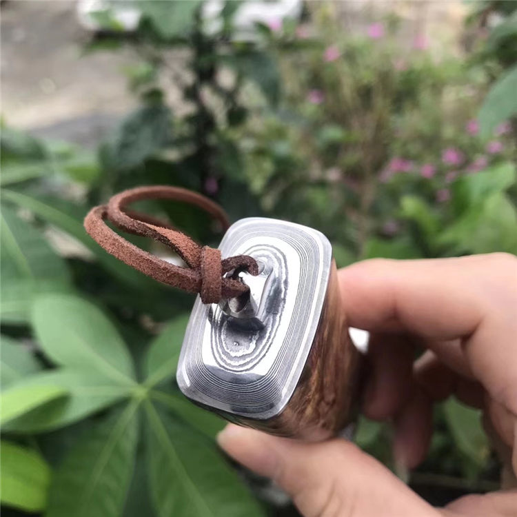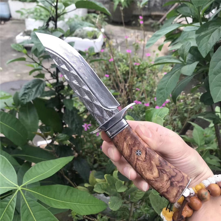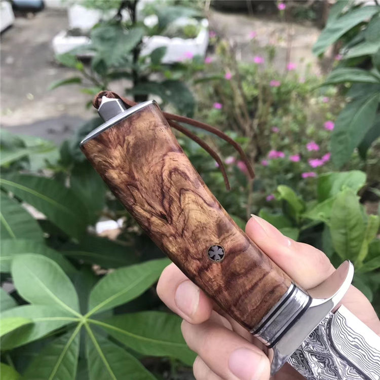 手柄:美国进口名贵疤花瘤木镶嵌无芯层大马士革钢