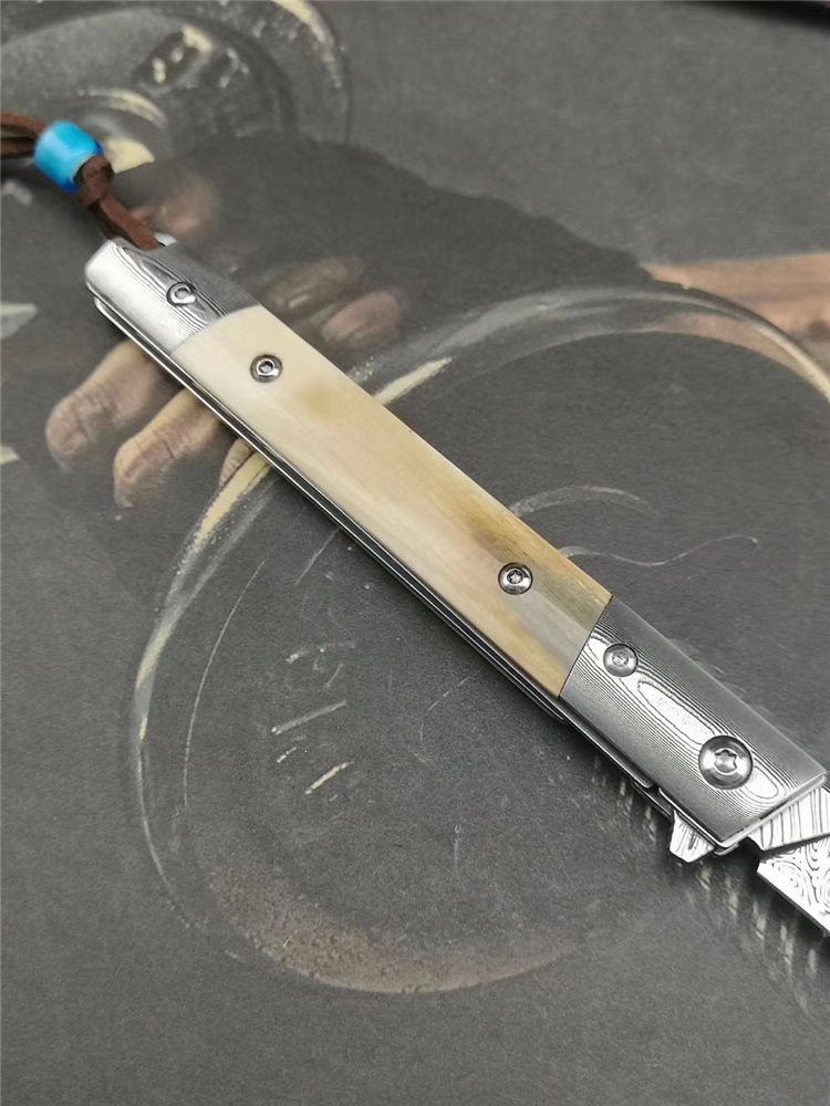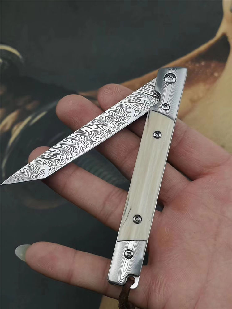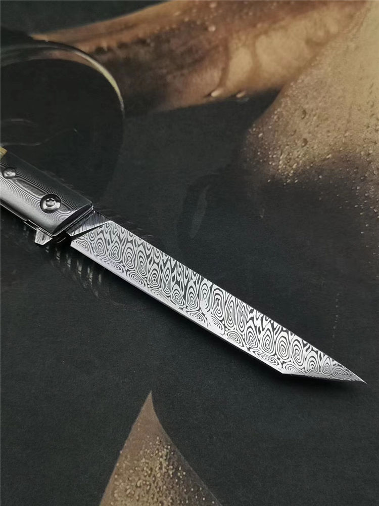 大马士革火焰纹EDC绿洲神笔快开折刀