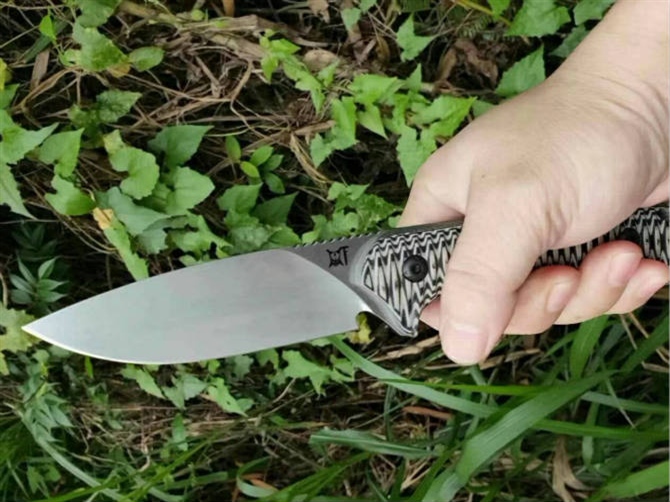 华匠坊原创喙-2直刀 刃材:DC53 全长:235MM 柄长:130MM 刃长:105MM 刃厚:5MM 柄材:双色黑沙漠色G10 硬度:60(真空率热处理) 刀鞘:美产2.0K鞘配送K夹,礼品合子 刃面:数控大平磨,手工砂光,精细石洗,