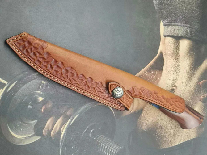 工艺:CNC雕刻+手工研磨,皮套:意大利进口优质植鞣皮,国内大师纯手工缝线做旧染色