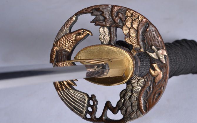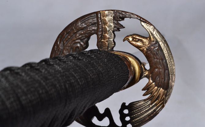 鎏金苍鹰.村雨丸武士刀(特制烧刃心电图刃纹)