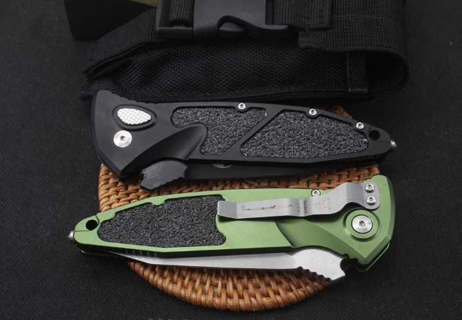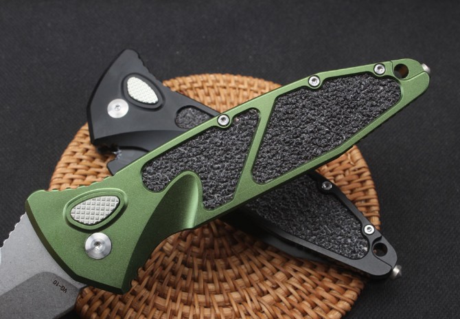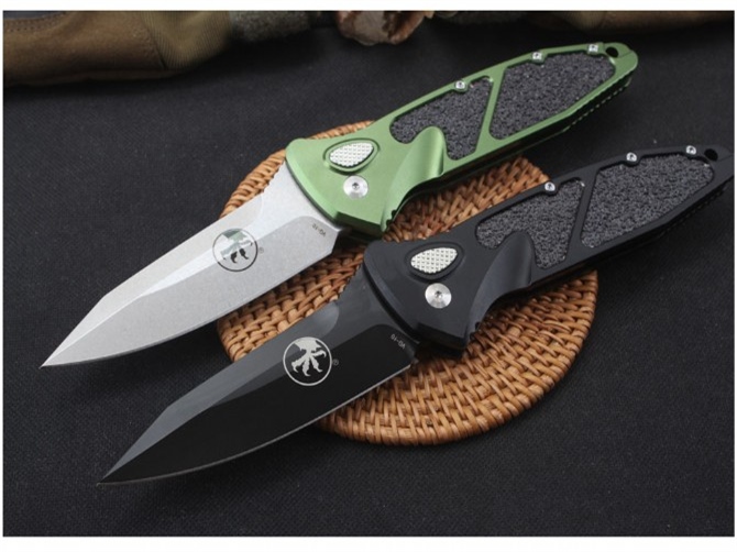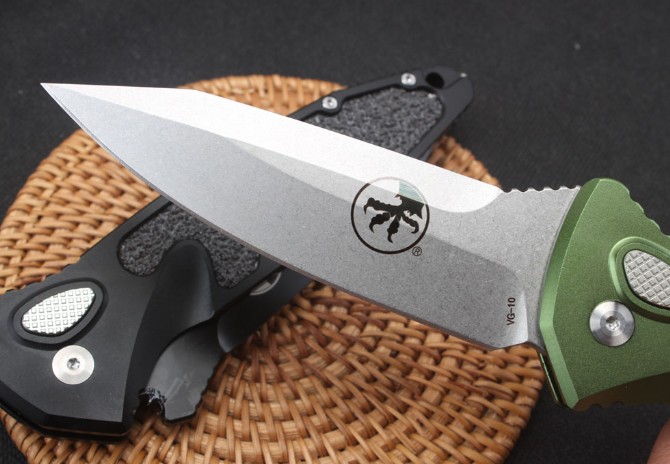 微技术猎豹侧开跳刀 全长:234mm 刃长:98毫米 刃厚:4毫米 材料:vg10 硬度:58-60hrc 柄材:航空铝合金6061+石英贴片 螺丝、夹子:420不锈钢 净重155g