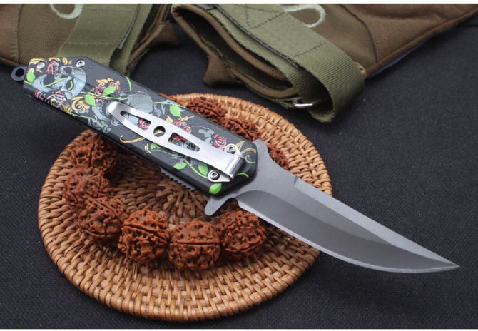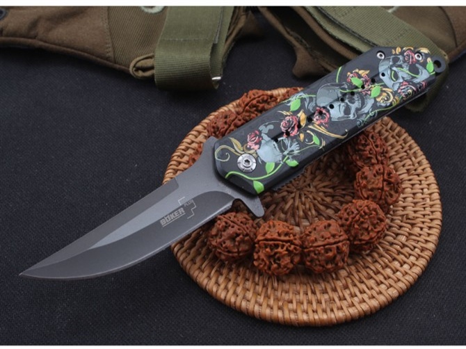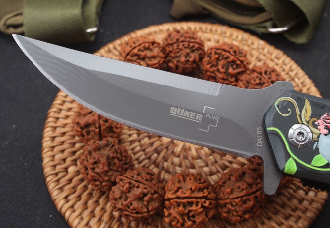 巴克DA165快开折刀 全长:20.8cm 刃长:8.8cm 柄长:12.1cm 刃宽:2.2cm 刃厚:2.1cm 刃材:440 重量:228g(含包装) 硬度:58HRC 表面:灰钛 柄材:3D图像 锁型:侧锁 其他:彩盒