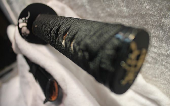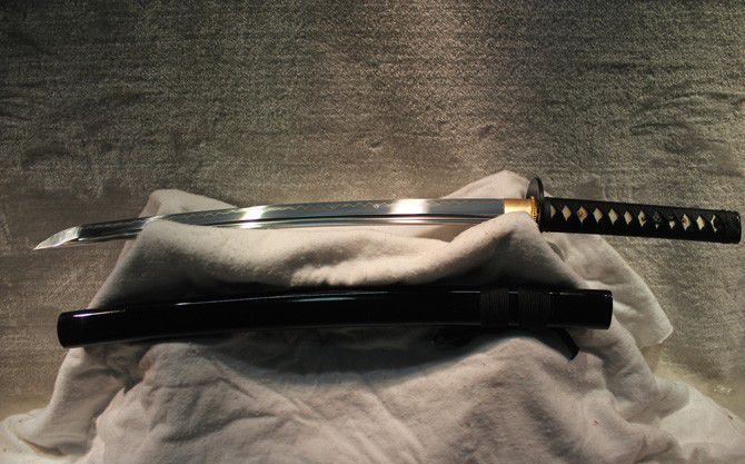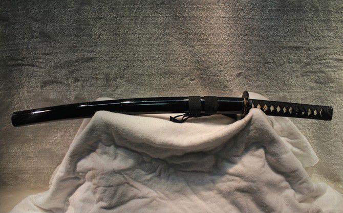 鞘材:黑木烤漆,外扎黑棉绳。