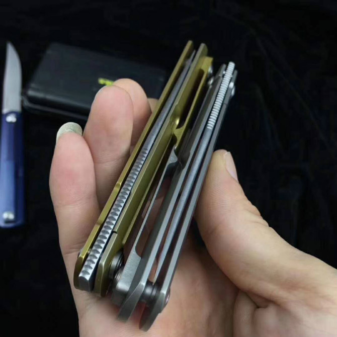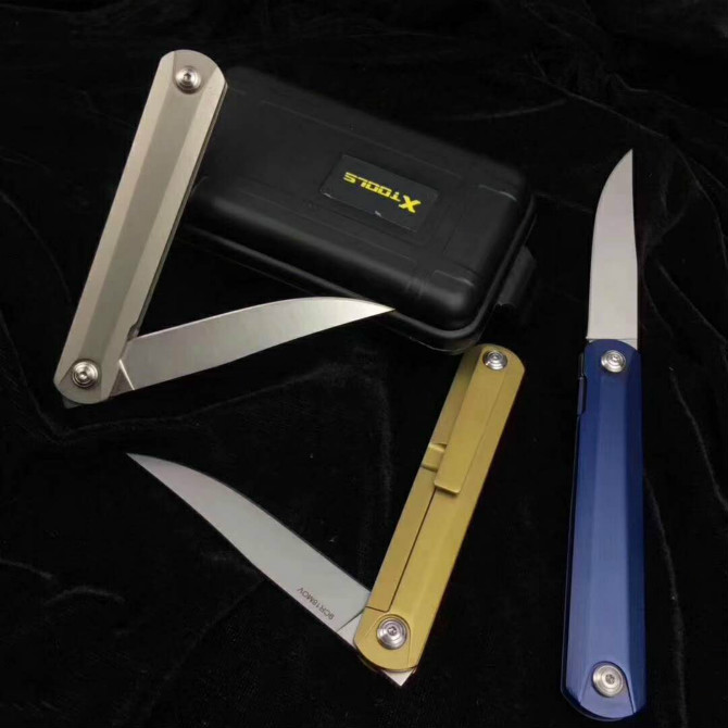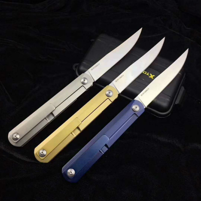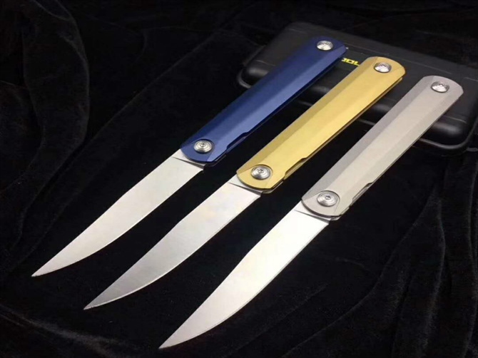 GB01轴承军需官折刀 总长:203mm 刃长:88mm 柄长:115mm 刃厚:3.0mm 材料:9CR8MO 硬度:58-60HRC 柄材:钢柄蓝色,银色 净重:102克 滚珠轴承快开 刀片研磨V型平磨刀片,表面处理砂光