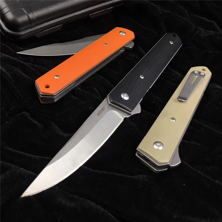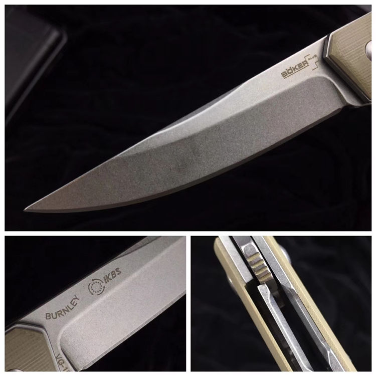 博克Kwaiken轴承快开折刀 总长:212mm 刃长:88.5mm 刃宽:21mm 柄厚:14mm 刃材:9cR18MOV 硬度:58-60HRC 表面:石洗 刃厚:3mm 柄材:G10+钢 净重:130克 滚珠轴承快开系统 Boker Kwaiken以Lucas Burnley刀身定制设计为基础,展现亚洲传统设计的简洁线条和简约美学。这圆滑,超薄的文件夹功能在设计和携带方便,在口袋里方便,每天使用。IKBS滚珠轴承枢轴可快速展开,而直刺刀片的空心研磨使其具有良好的切削性能