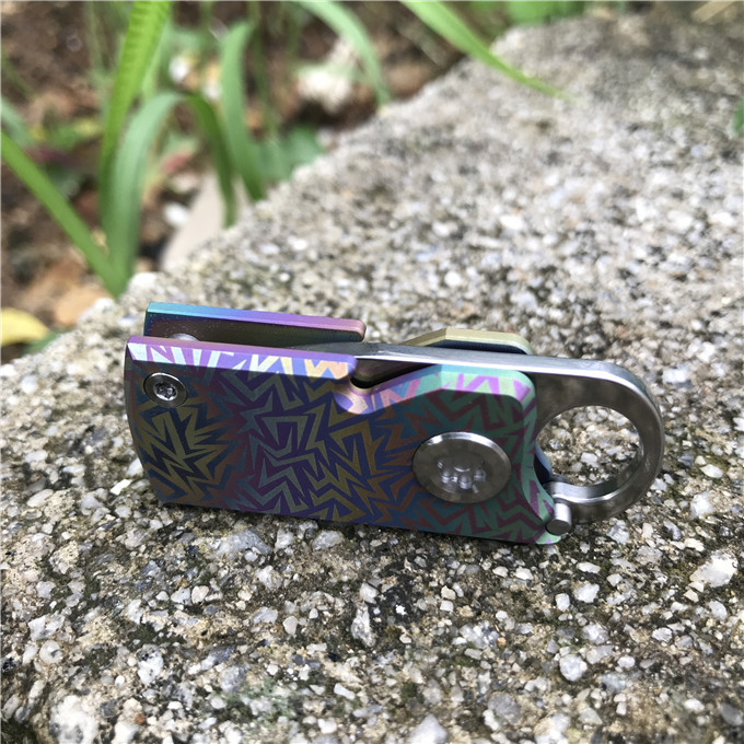 高端介纸刀M390钛合金无锁折刀 类型:无锁折刀 刀刃:奥地利粉末神钢M390 HRC:60o±1o 刃厚:25mm 表面:砂光 手柄:钛合金+军工氧化 刃长:20mm 总长::60mm