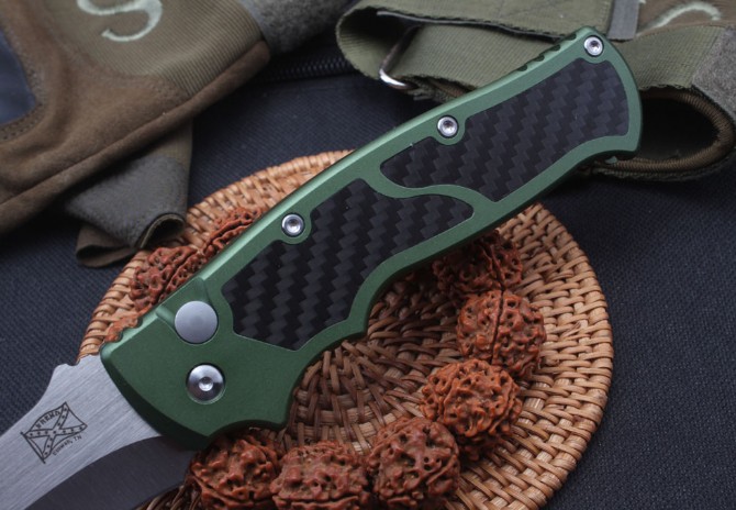 布兰登M2半自动折刀 总长:231mm 刀片长度:98mm 手柄长度:134mm 刀片厚度:4.4mm(最厚) 刀片材质:D2 手柄材质:铝+碳纤维 硬度:58-60HRC 刀重量:175克 刀片处理:拉丝