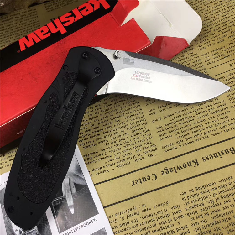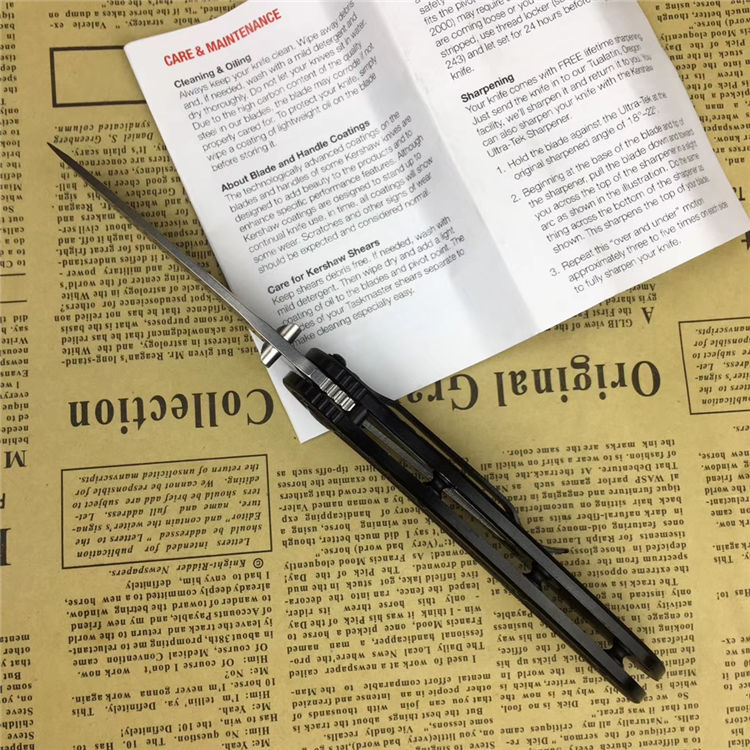 卡秀1670折刀 叶片长度:3.375”(8.6厘米) 封闭长度:4.5"(11.4厘米) 总长度:7.875"(20厘米) 7班轮锁可翻转的(向上,向下)夹子钢:S30V,磨光处理把手:阳极氧化铝把手与tractec插入