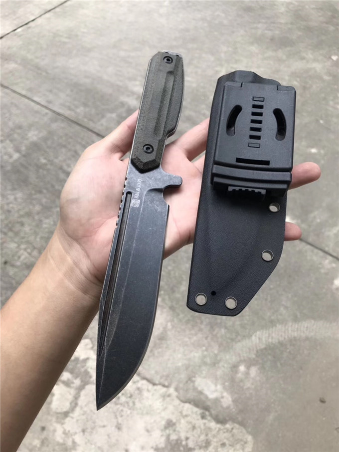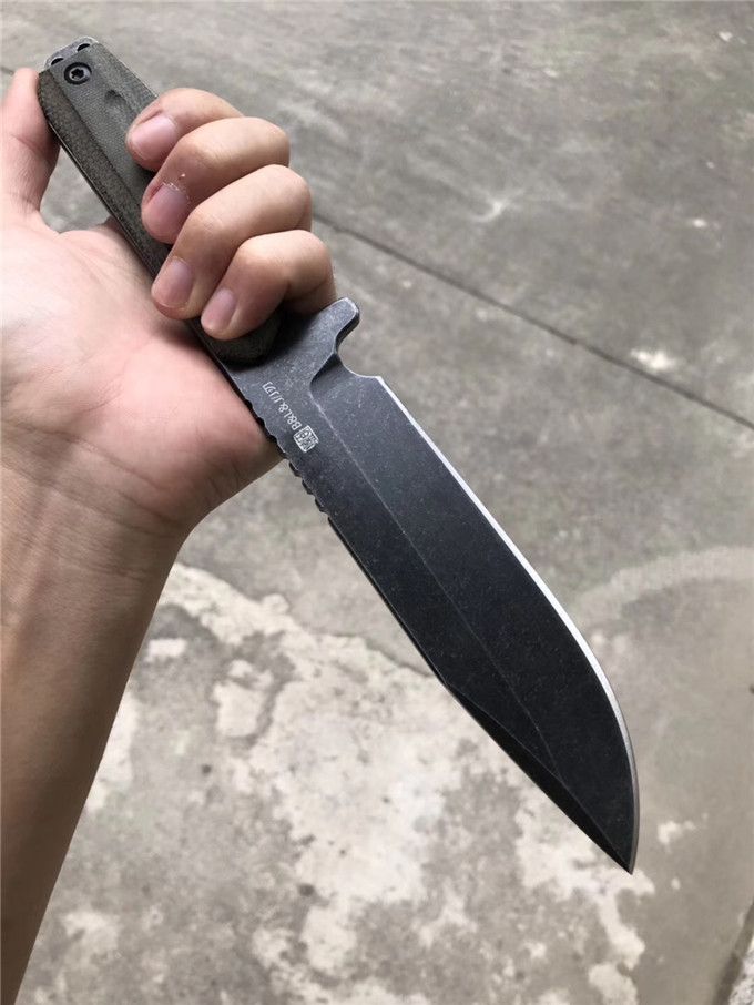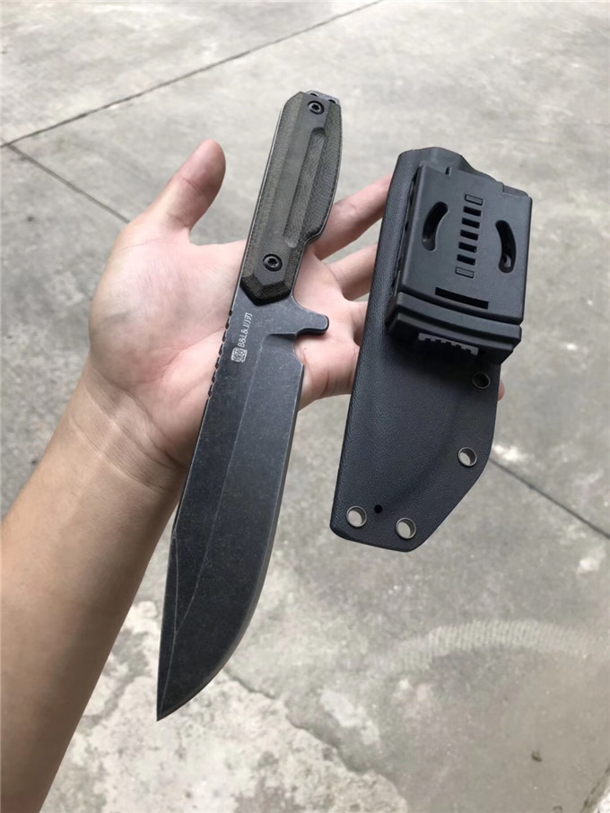 百炼升级版机械战警直刀 总长:28cm 刃长:15.5cm 刃厚:5mm 刃宽:3.6cm 钢材:进口DC53钢 硬度:61-63HRC真空深冷热处理 柄材:亚麻材质、吸汗、速干、防滑 刀套:进口战术K鞘 百炼成刃正品《机械战警升级版》DC53模具钢限量特惠亚麻手柄,升级带槽款,更加霸气,真材实料进口DC53钢,硬度达到62-63HRC