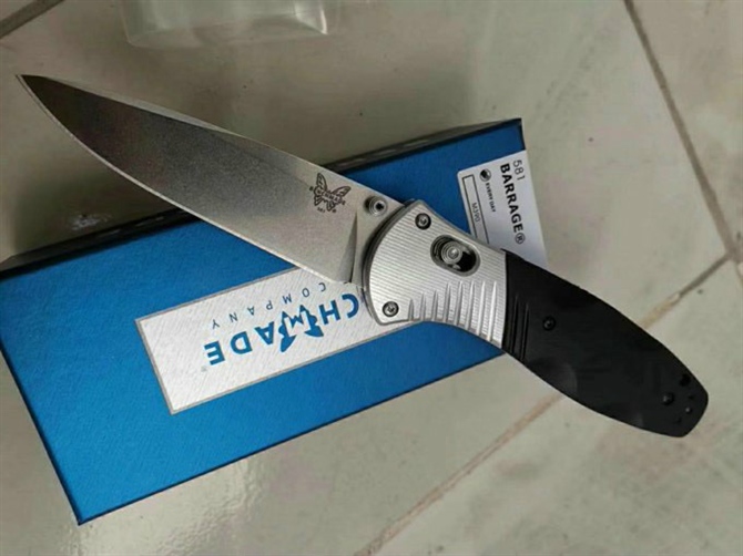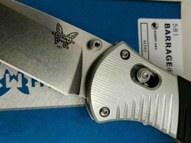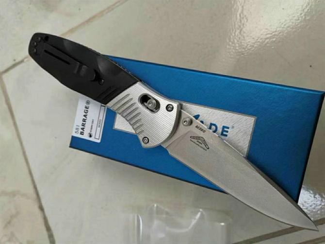 巨力蝴蝶581折刀 全长:212mm 刃长:91mm 闭合长度:121mm 刃材:石洗GB-D2 硬度:60-61 表面:石洗 刃厚:3mm 柄长:121mm 柄材:6061+G10+420J