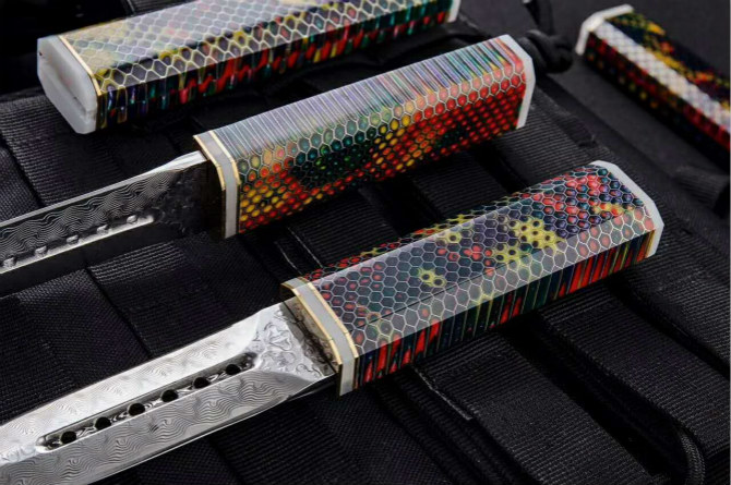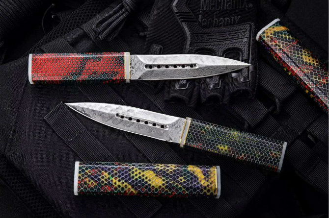刀鞘:幻彩蜂窝铝+G10+铜头