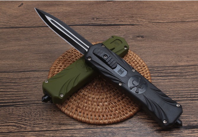 罗刹双锋直出跳刀 全长:23cm 刃长:100mm 柄长:130mm 刃宽:20mm 刃厚:2.0mm 刃材:5Cr13Mov 硬度:57HRC 表面:拉丝 柄材:ABS 锁型:直出