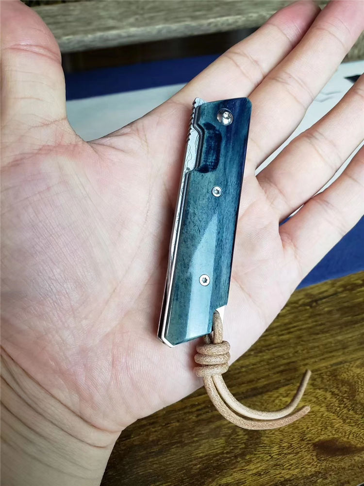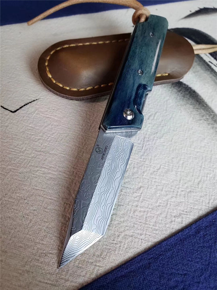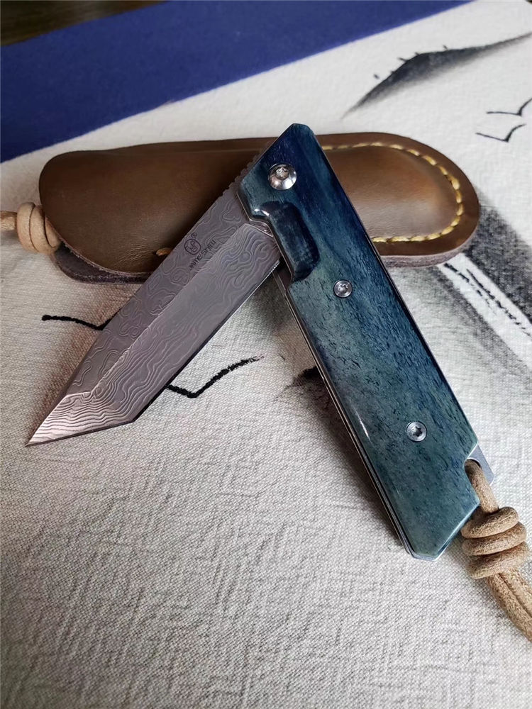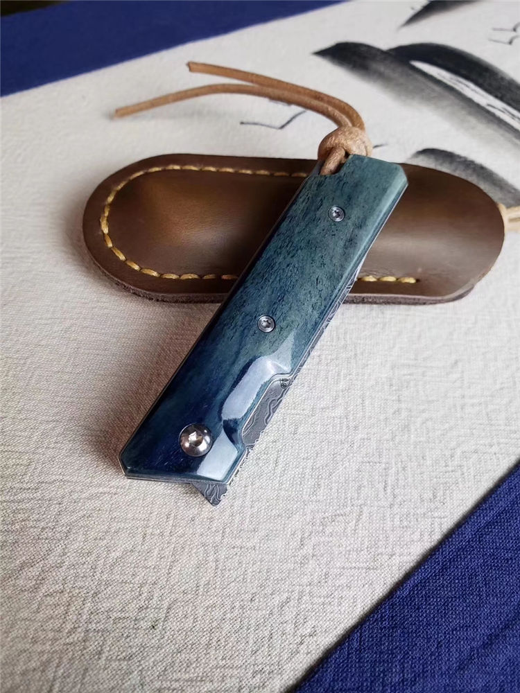 简师傅大马士革魔方折刀 全长:15.5CM 刃长:6.5CM 刃厚:3.5MM 刃宽:1.9CM 配头:层牛皮手工缝制皮套,复古礼盒包装