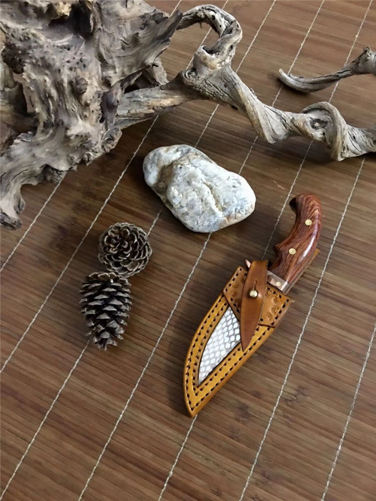 一体龙440C刃材油黄花梨木柄配小巧手工牛皮套数量有限,手慢无缘