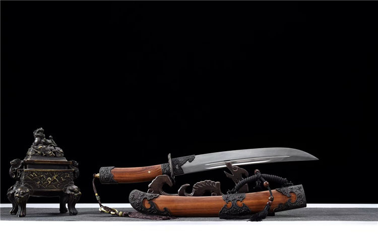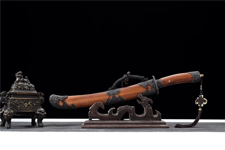 传统虎贲二代清刀 专业测试、请勿模仿 工艺:龙泉古法传统手工艺 装具:纯铜 刃材:扭转花纹钢 柄材:酸枝木 鞘材:酸枝木 赠品:高端锦盒、养护油、布
