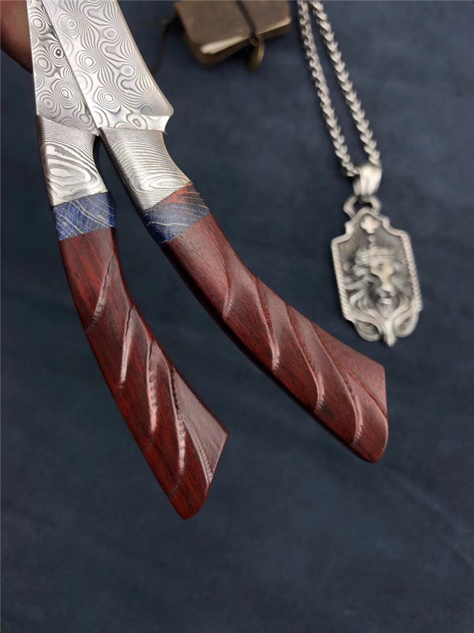 手柄:大马扭曲纹钢头+稳定木隔片+科檀木