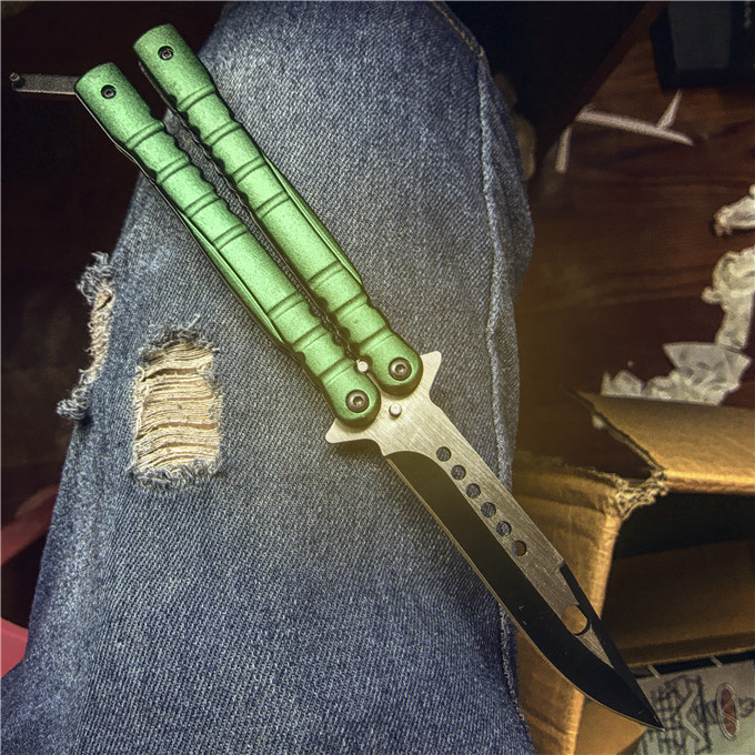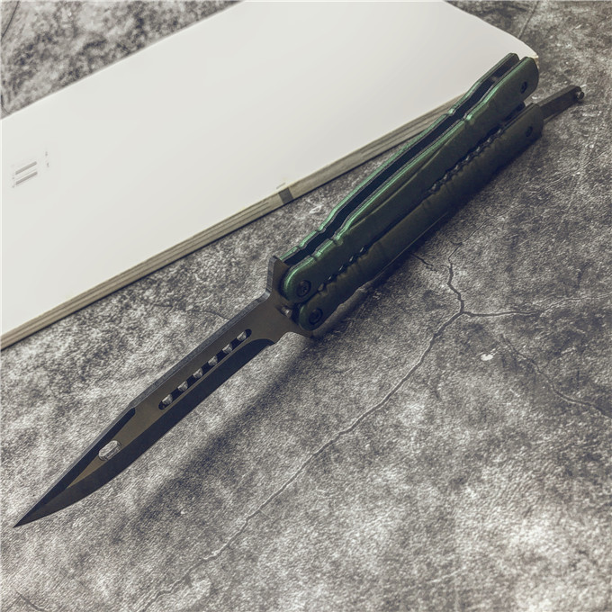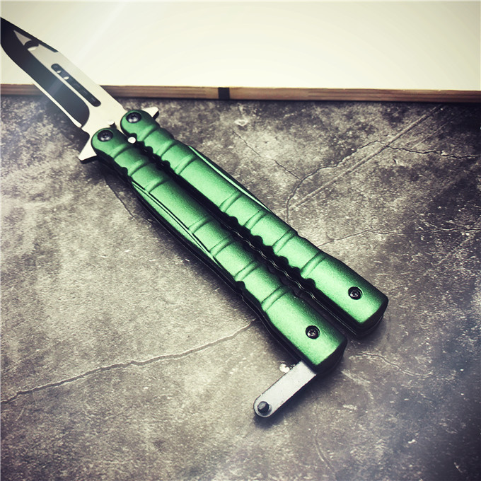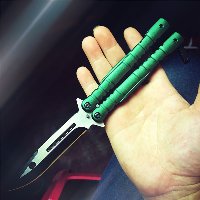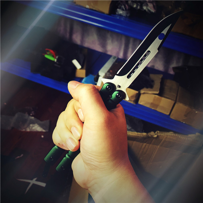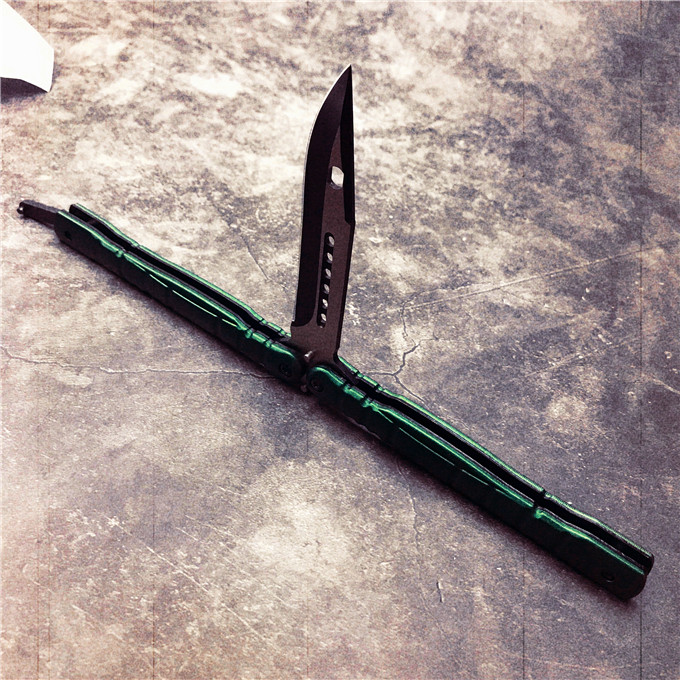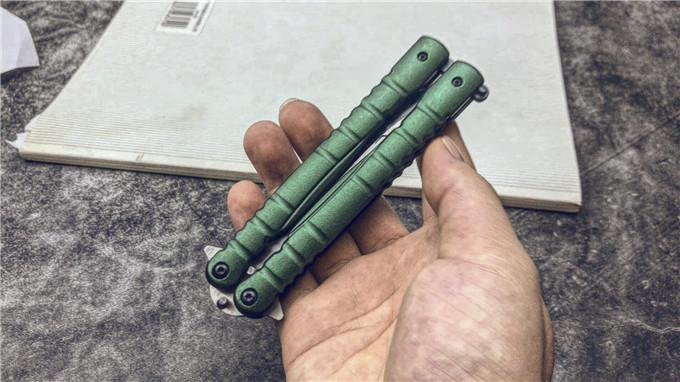 绿色版灭霸甩刀 全长:22.7cm 刃长:9.2cm 刃宽:2.1cm(最宽处) 刃厚:2.7mm 刃材:5CR15MOV 硬度:57HRC 刀柄:铝柄 表面:沙光 重量:155克(含包装)
