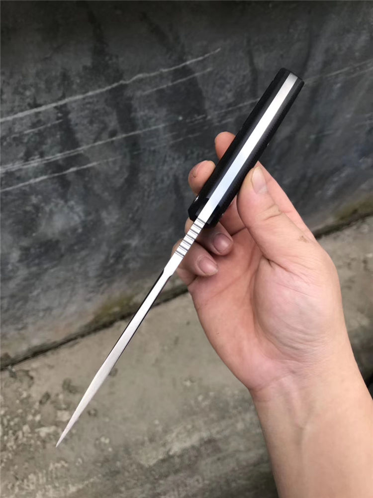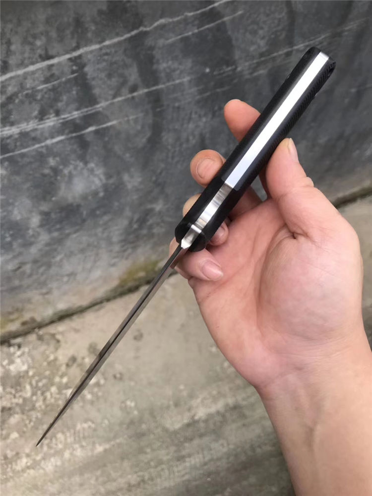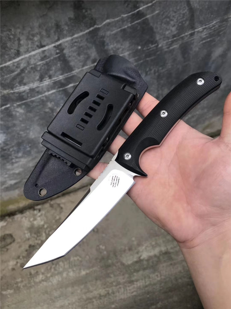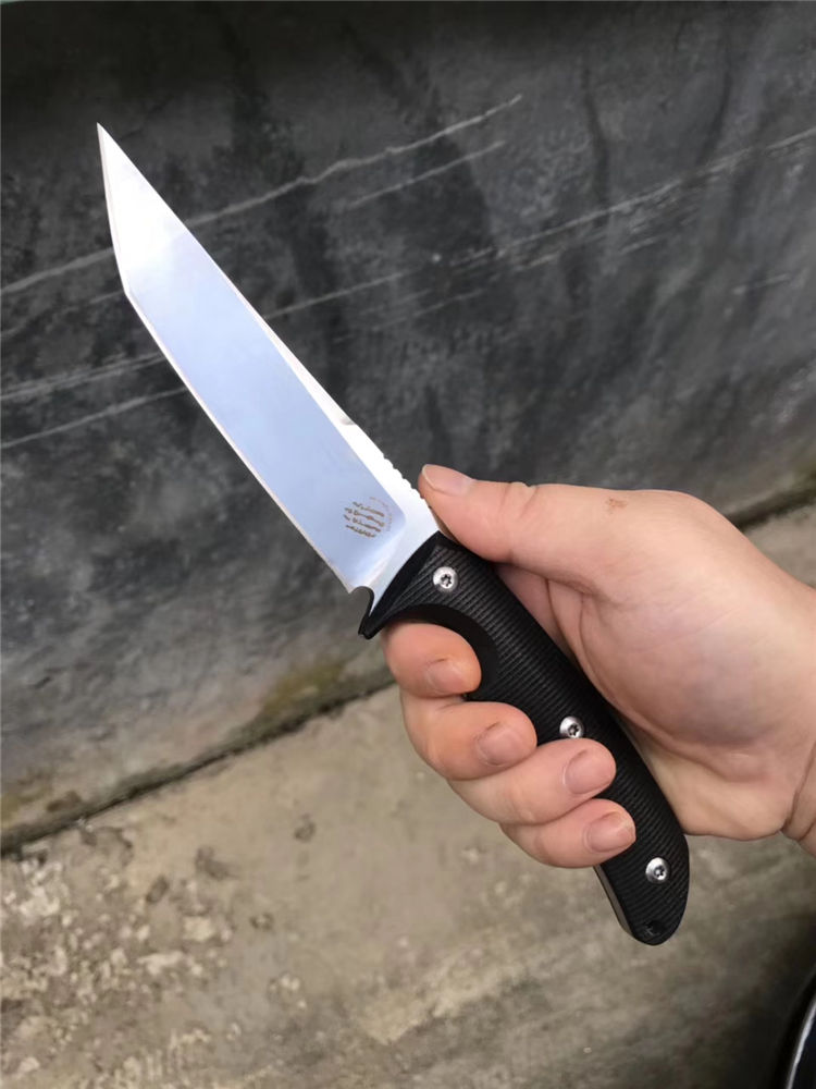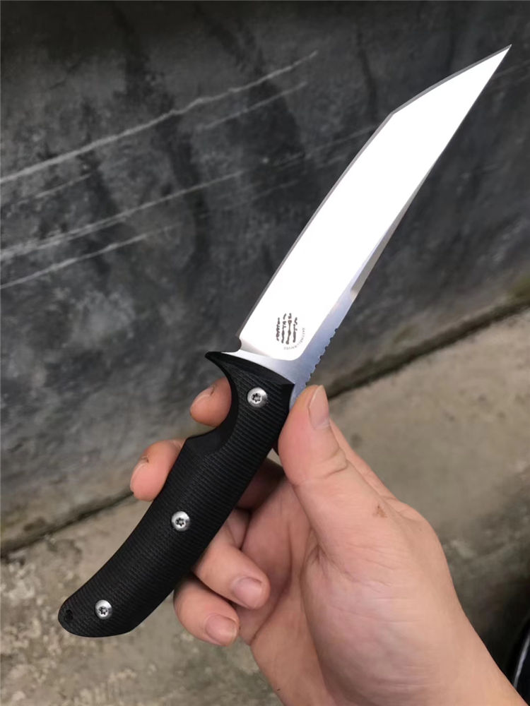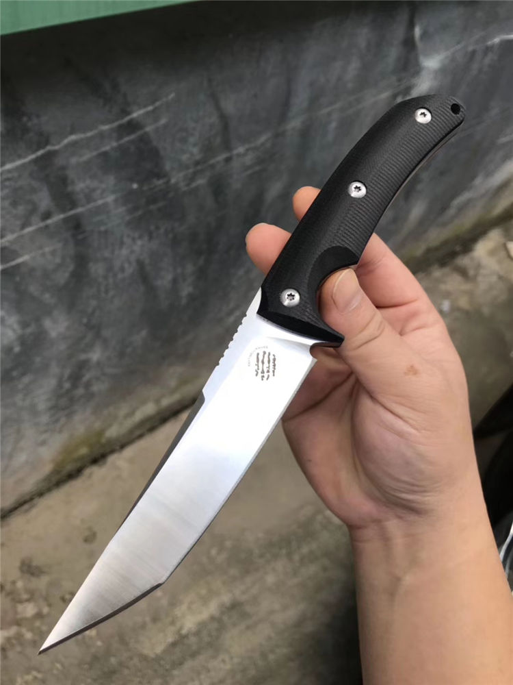 巴斯蒂内利户外直刀 全长:24 cm(一体龙骨) 刃长:12.5cm 柄长:11.5cm 刃宽:30mm 刃厚:5.0mm 重量:285g(包括K鞘) 钢材:Dc53 硬度:60-62RHC 热处理方式:(淬油真空热处理) 开刃方式:二次开刃,以锋利度为主 刀柄:黑色G10 刀鞘:进口黑色K鞘 包装:黑色礼品盒 一把好刀值得每一位刀友收藏和把玩