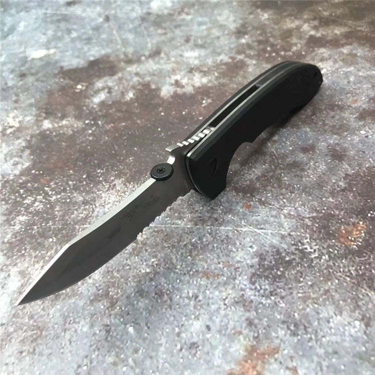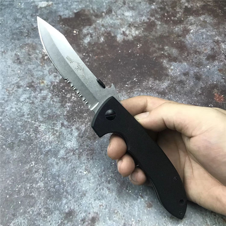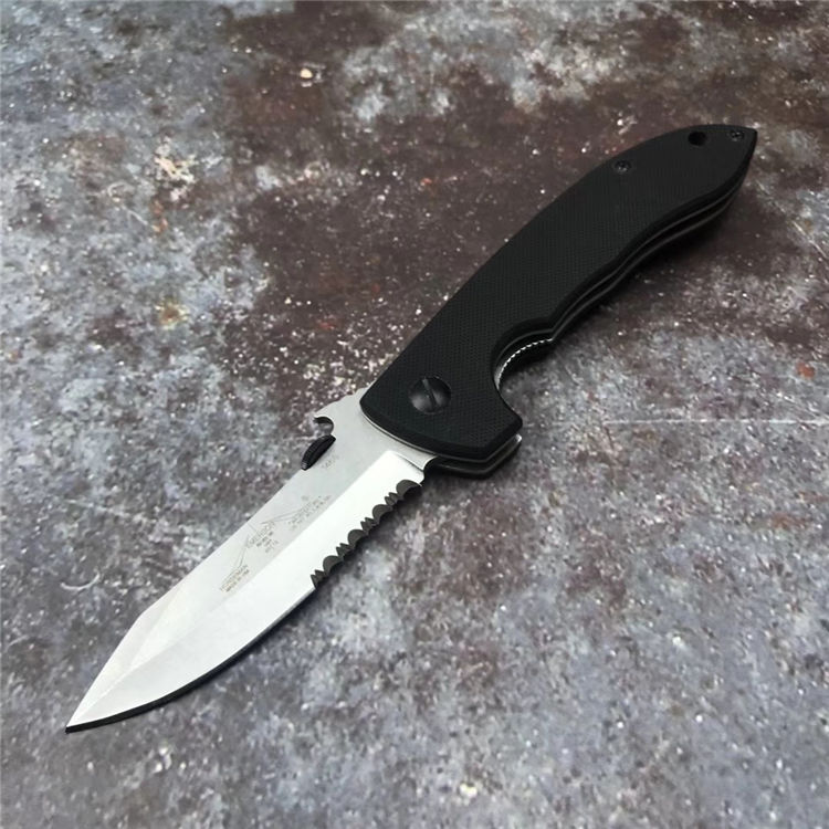 爱默生EMERSON折刀 全长: 21.0cm 刃长: 8.7cm 刃宽:2.1cm 刃厚: 3.3mm 柄长:12.3cm 刃材: 440 柄材: G10 硬度: 57Hrc 表面: 石洗 重量: 150g(含包装)