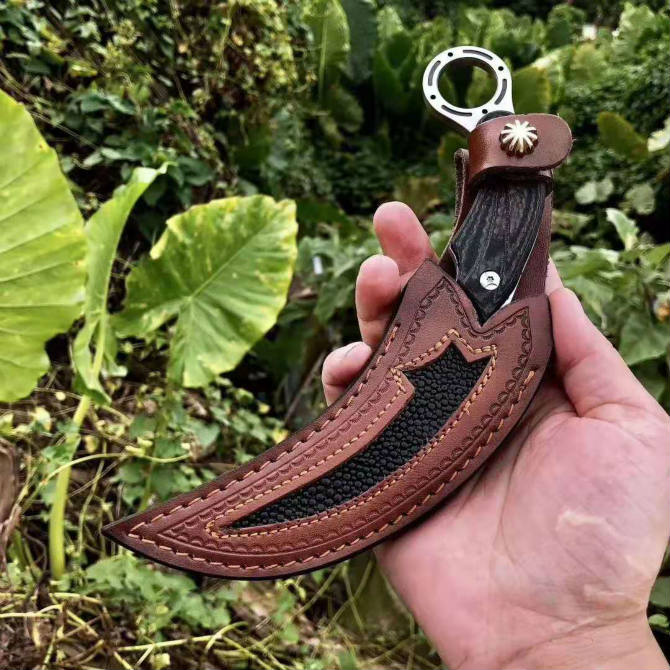 刺客信条格斗爪刀 全长:20.3cm 刃长:9.9cm 刃厚:5mm 刃材:进口DC53模具钢 柄材:碳纤维 皮套:高档手工真皮套、内镶珍珠皮,配精美手工盒 高端材料进口DC53模具钢、碳纤维手柄,真空油淬热处理技术,硬度可达61HRC保持更好的韧性、超级锋利,爪刀中的极品每把刀都有独一无二流水号001-380