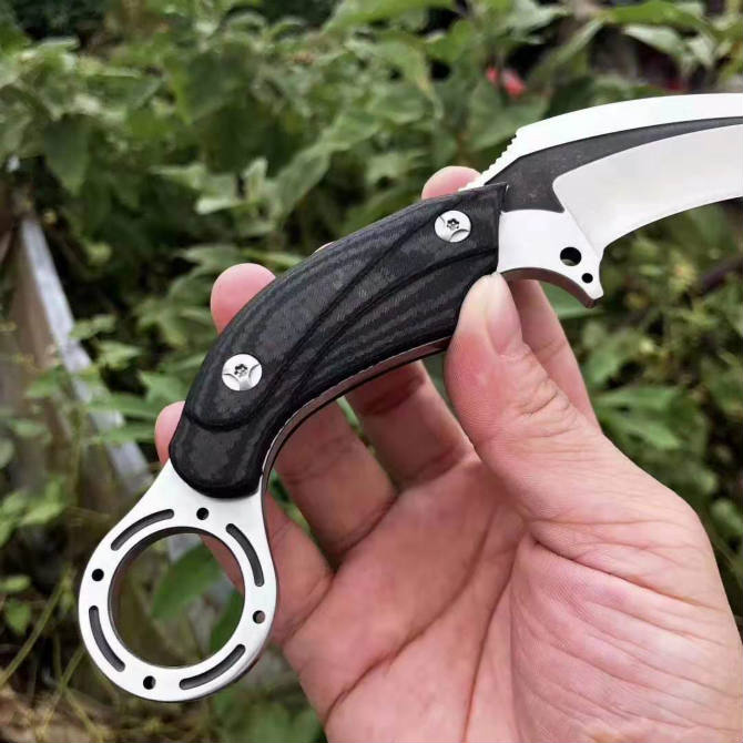高端材料进口DC53模具钢、碳纤维手柄,真空油淬热处理技术,硬度可达61HRC保持更好的韧性、超级锋利,爪刀中的极品每把刀都有独一无二流水号001-380