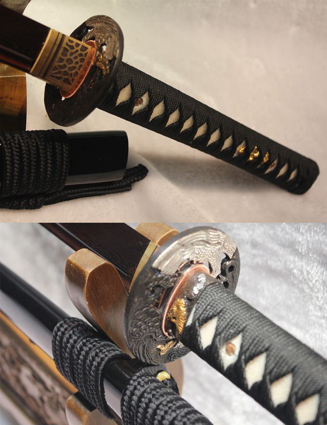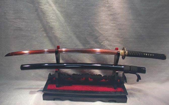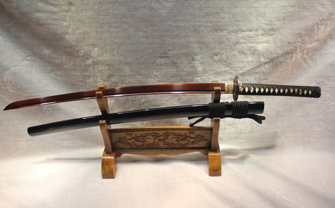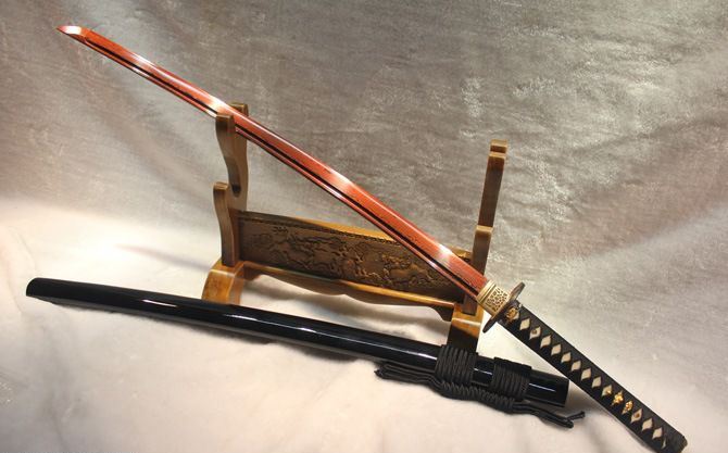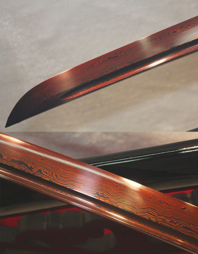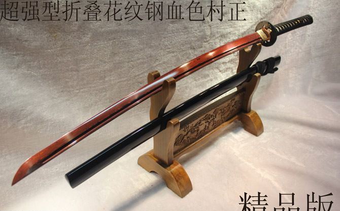 血色长村正 全长:102cm 刃长:77cm 柄长:23cm 刃宽:3.2cm 刃厚:0.75cm 刀重:1300 g (含鞘) 总重:2500g (含锦盒) 刃材:手工锻打花纹钢 鞘材:青皮油漆 装材:铜装 柄材:硬木精细扎绳 加工工艺:百炼花纹钢,手工折叠锻打,传统古法13道研磨。 硬度区间:刃口59HRC;刀身:56HRC 性能:削纸断竹 备注:手工产品存在误差,规格仅供参考,请以实物为准!