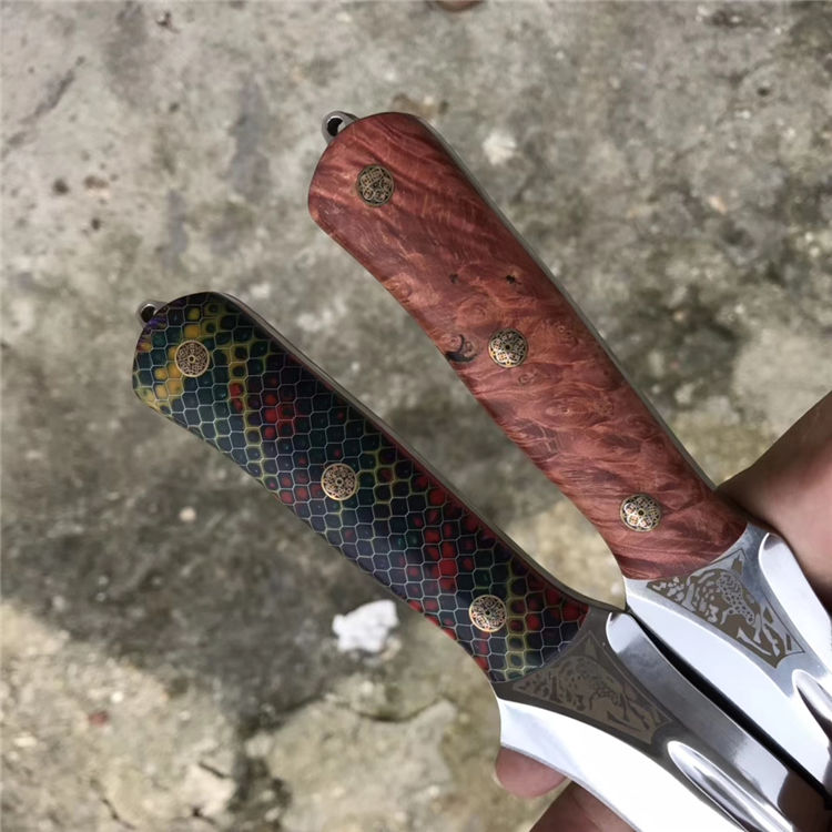 柄材:进口幻彩蜂窝铝+进口固化稳定木,一体龙骨结构(刀柄内有减重)