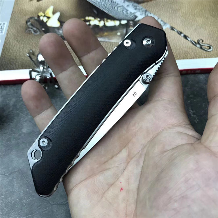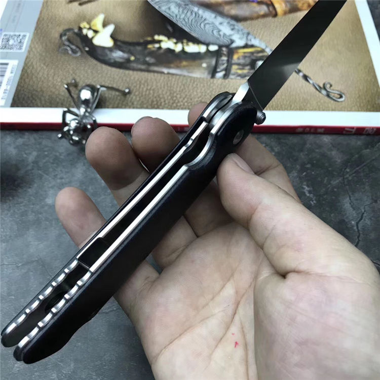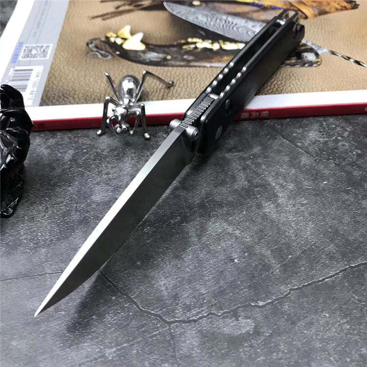 随风版LK5016极速快开折刀 全长:220mm 刃长:95mm 柄长:126mm 刃厚:3.5mm 刃宽:27mm 刃材:440C 刀刃处理: 砂光 硬度:HRC58-59 净重:140g 柄材:G10黑色