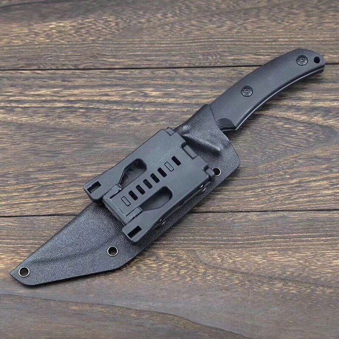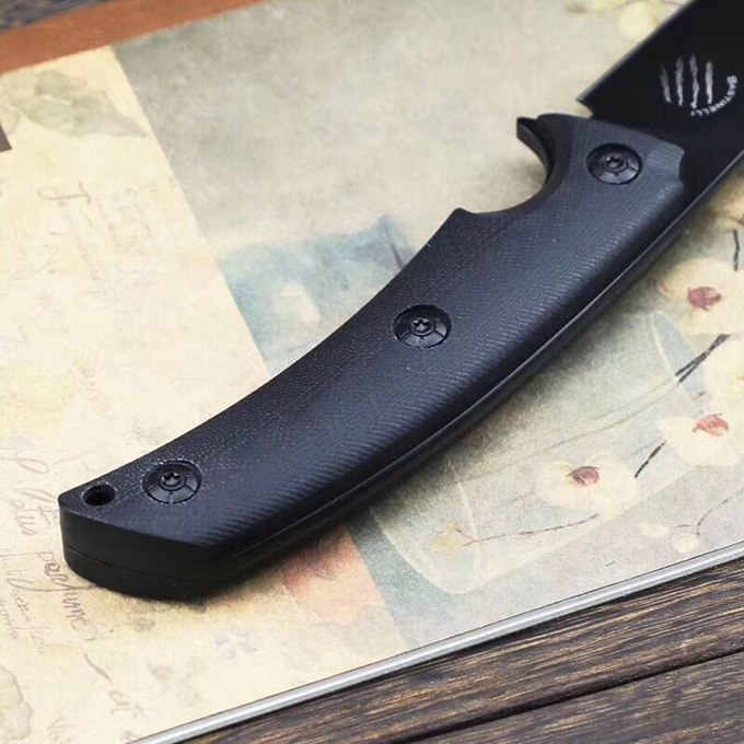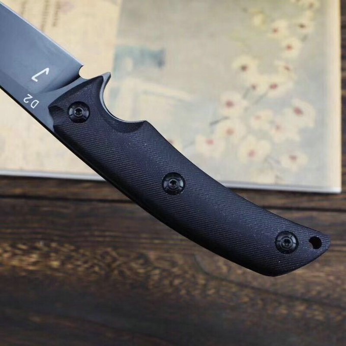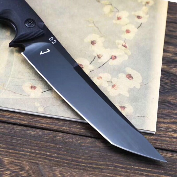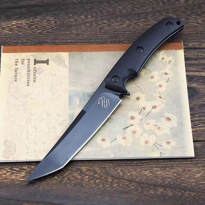 巴斯蒂内利黑版户外直刀 全长:26cm(一体龙骨) 刃长:12.cm 柄长:14cm 刃宽:3.1cm 刃厚:0.4cm 重量:283g(包括K鞘) 钢材:进口D2高速钢 硬度:60_62RHC 热处理方式:(淬油真空热处理) 开刃方式:二次开刃,以锋利度为主 刀柄:黑色G10 刀鞘:进口黑色K鞘