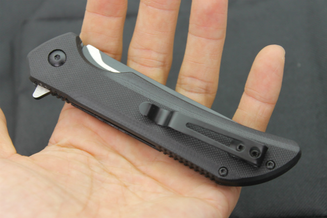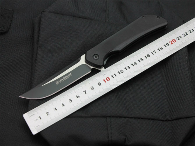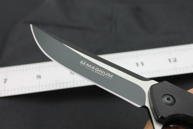 博克风景线折刀 类型:折刀 全长:21cm 刃长:9cm 柄长:12cm 刃厚:0.25cm 刃宽:2.1cm 刃材:440A 柄材:钢片+G10。 硬度:57HRC 净重:110克(含包装) 锁定:侧锁 表面处:黑钛+拉丝 其他:纸盒