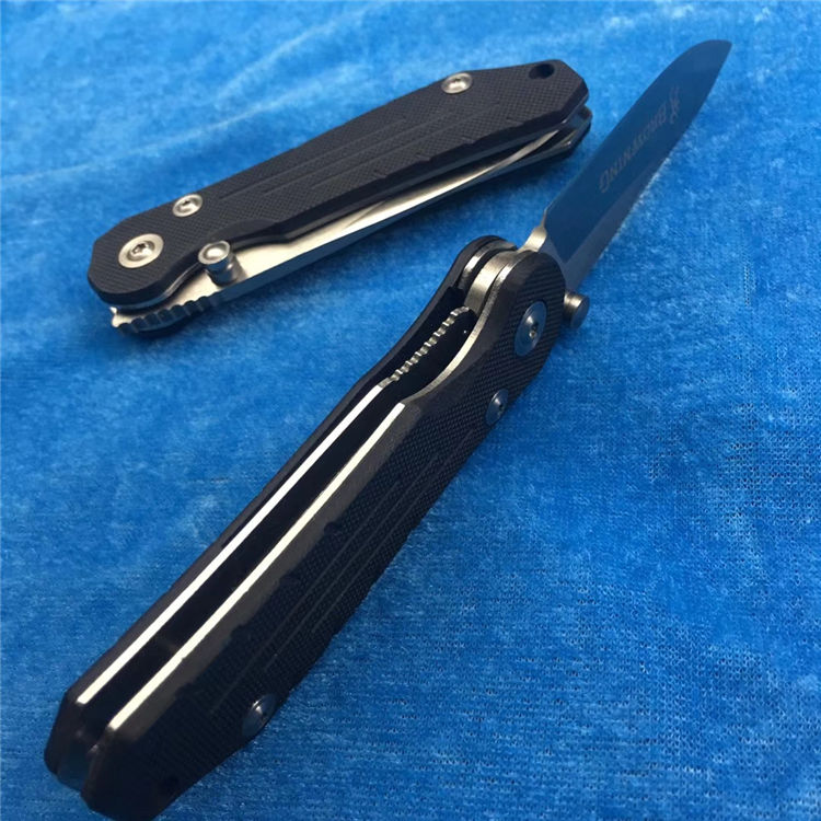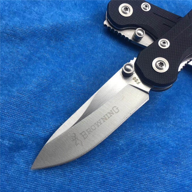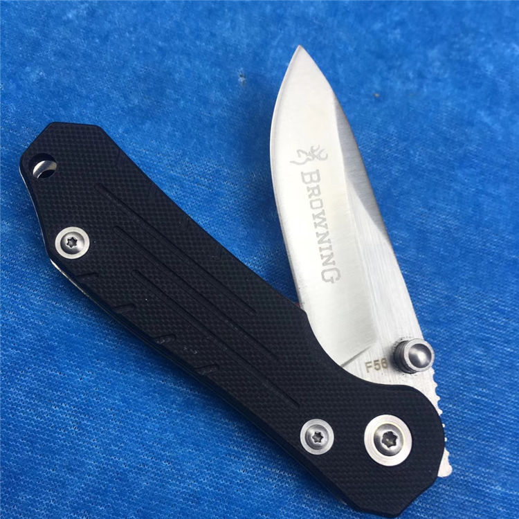 勃朗宁F56鹰爪折刀 总长:16.5cm 刃长:6.7cm 柄长:9.5cm 刃宽:2.3cm(最宽处) 刃厚:3.1mm 刃材:5CR13MOV 硬度:56HRC 刀柄:钢+黑色G10柄 表面:灰钛 重量:116克含包装
