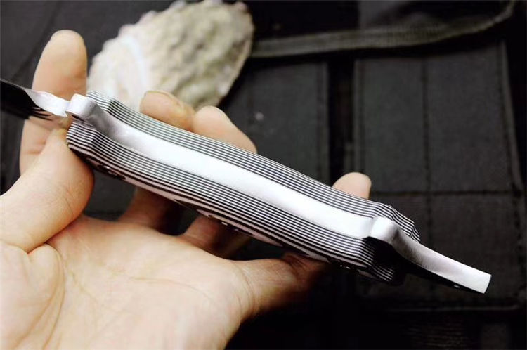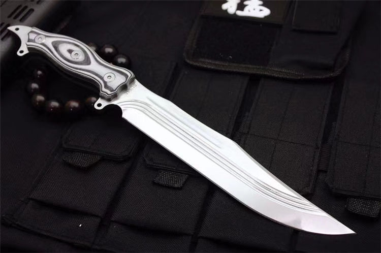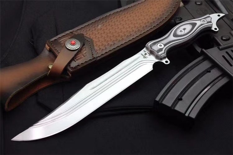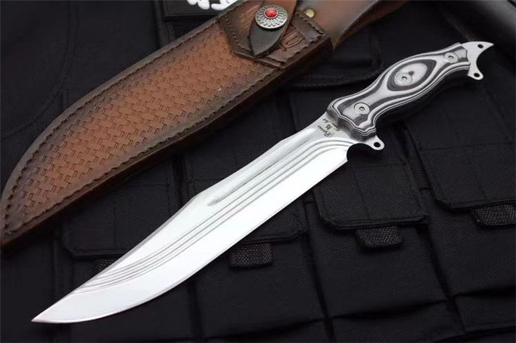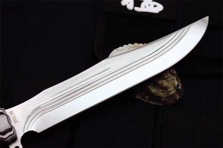 2019款新版巴斯战斗直刀 全长:35.5cm 刃长:20cm 刃厚:0.6cm 刃宽:3.6cm 材料:7cr17mov 硬度:58HRC 柄长:13.5cm 柄材:双色G10 重量:1000克(包含包装盒和真皮压花刀套) 其 他:水滴头三血槽刀身,刃口锋利一体龙骨结构真皮压花刀套 品 质:优等,合适野外生存刀具,设计完美,刀柄后有撞击头可以撞碎厚厚的玻璃和瓷片
