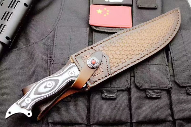 其 他:水滴头三血槽刀身,刃口锋利一体龙骨结构真皮压花刀套