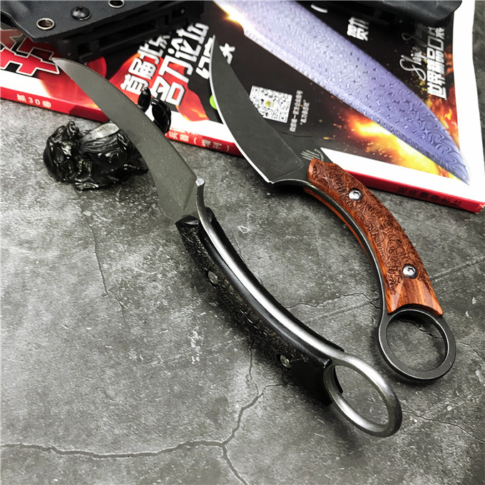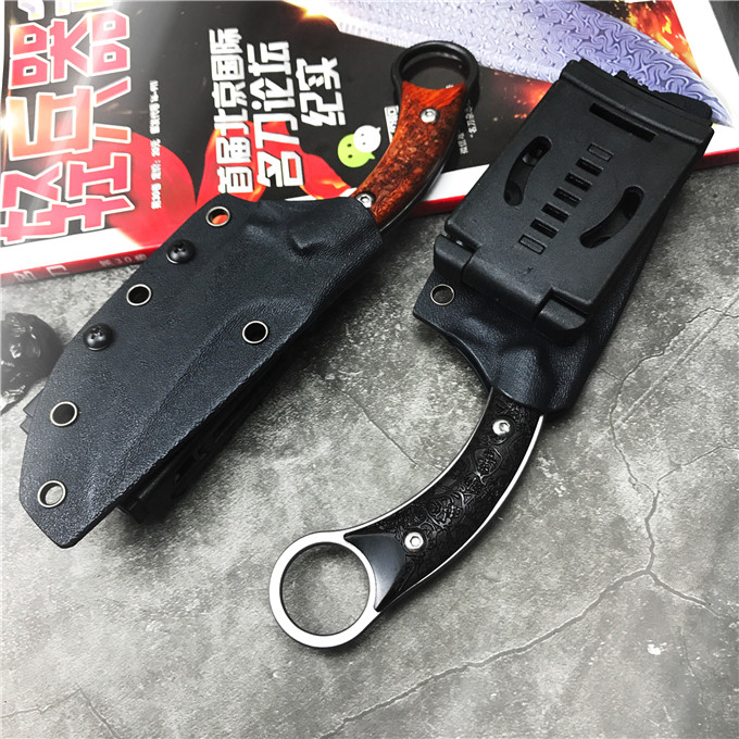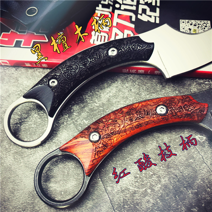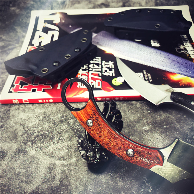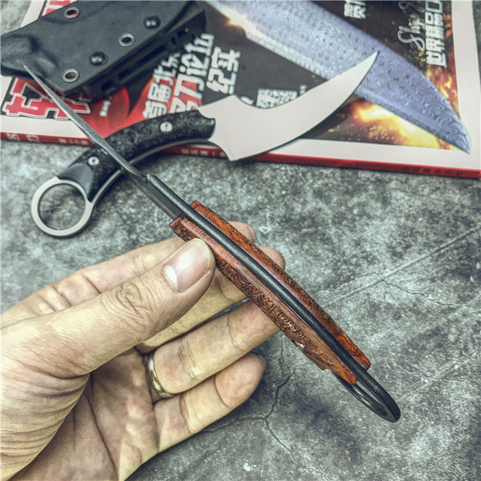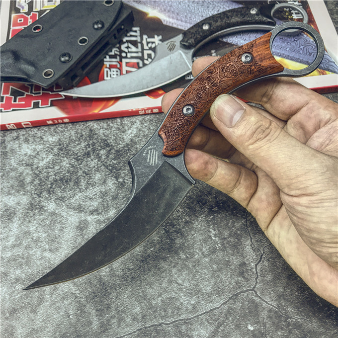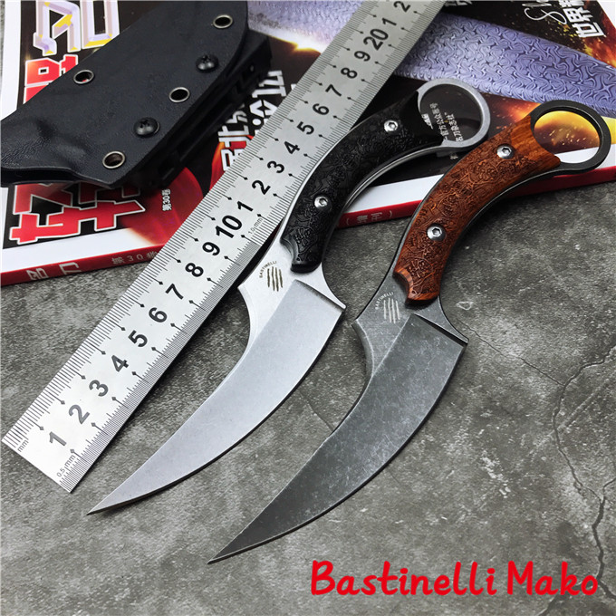 巴斯蒂内利灰鲭鲨木柄雕刻版直刀