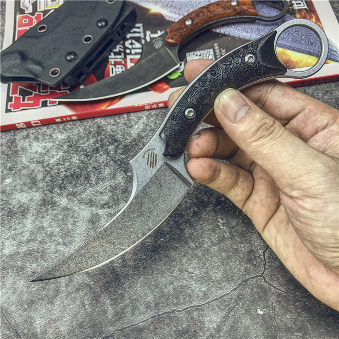 巴斯蒂内利灰鲭鲨木柄雕刻版直刀 品牌BastinelliKnives意大利巴斯蒂内利 钢材:440C 全长:19.8CM 刃长:9.8CM 刃厚:0.38CM 刃宽:3.4CM 硬度:58HRC(真空油冷热处理) 表面:沧桑石洗或石洗 刀柄:黑檀木或红酸枝 附件:K鞘 重量:200g(含包装) 包装:黑色礼品盒